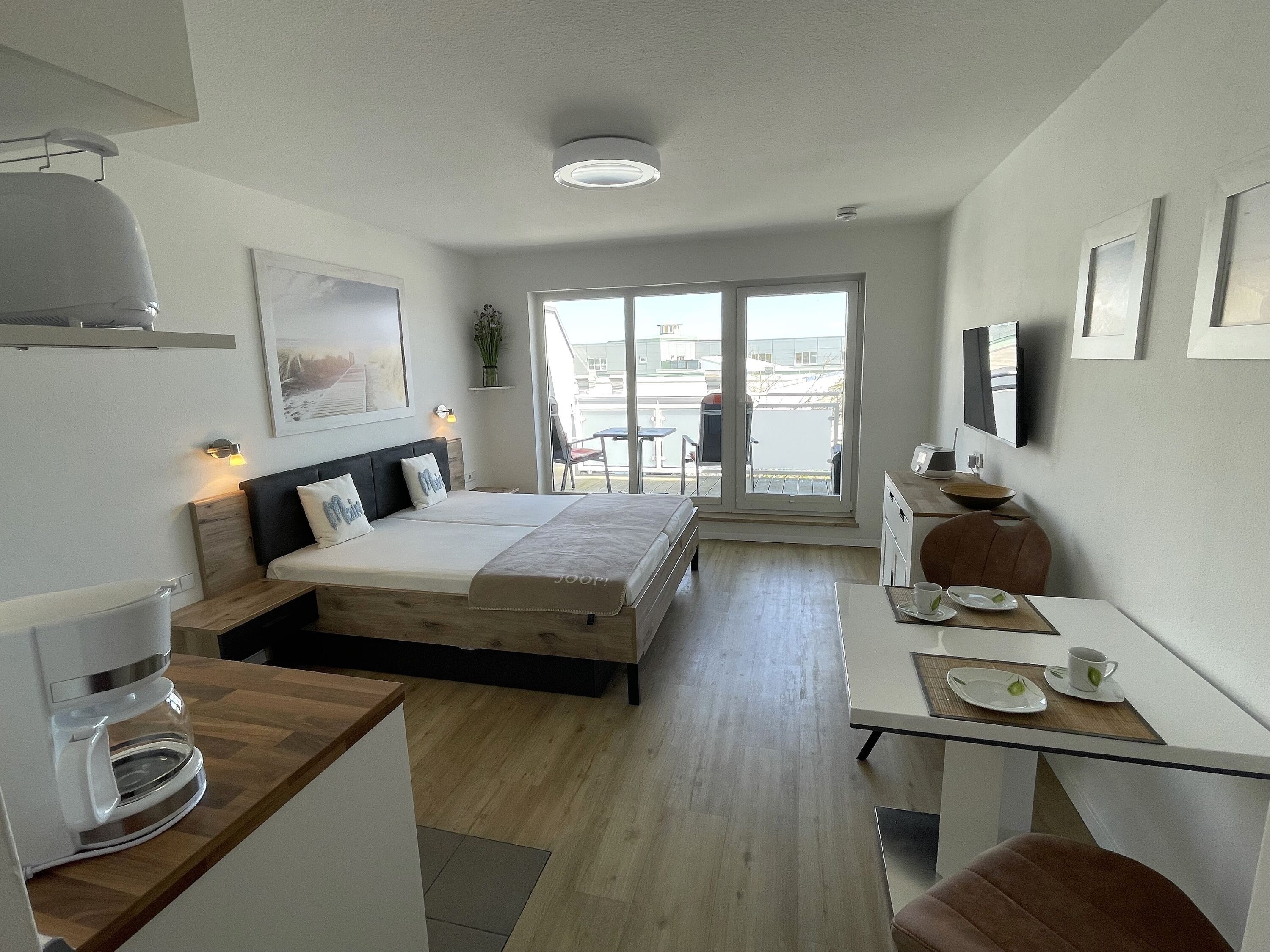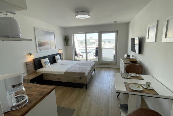 Die Ferienwohnung bietet Platz für maximal 2 Personen und erstreckt sich auf 28 m². Sie befindet sich in der Yachthafenresidenz und liegt im 2. Obergeschoss.
