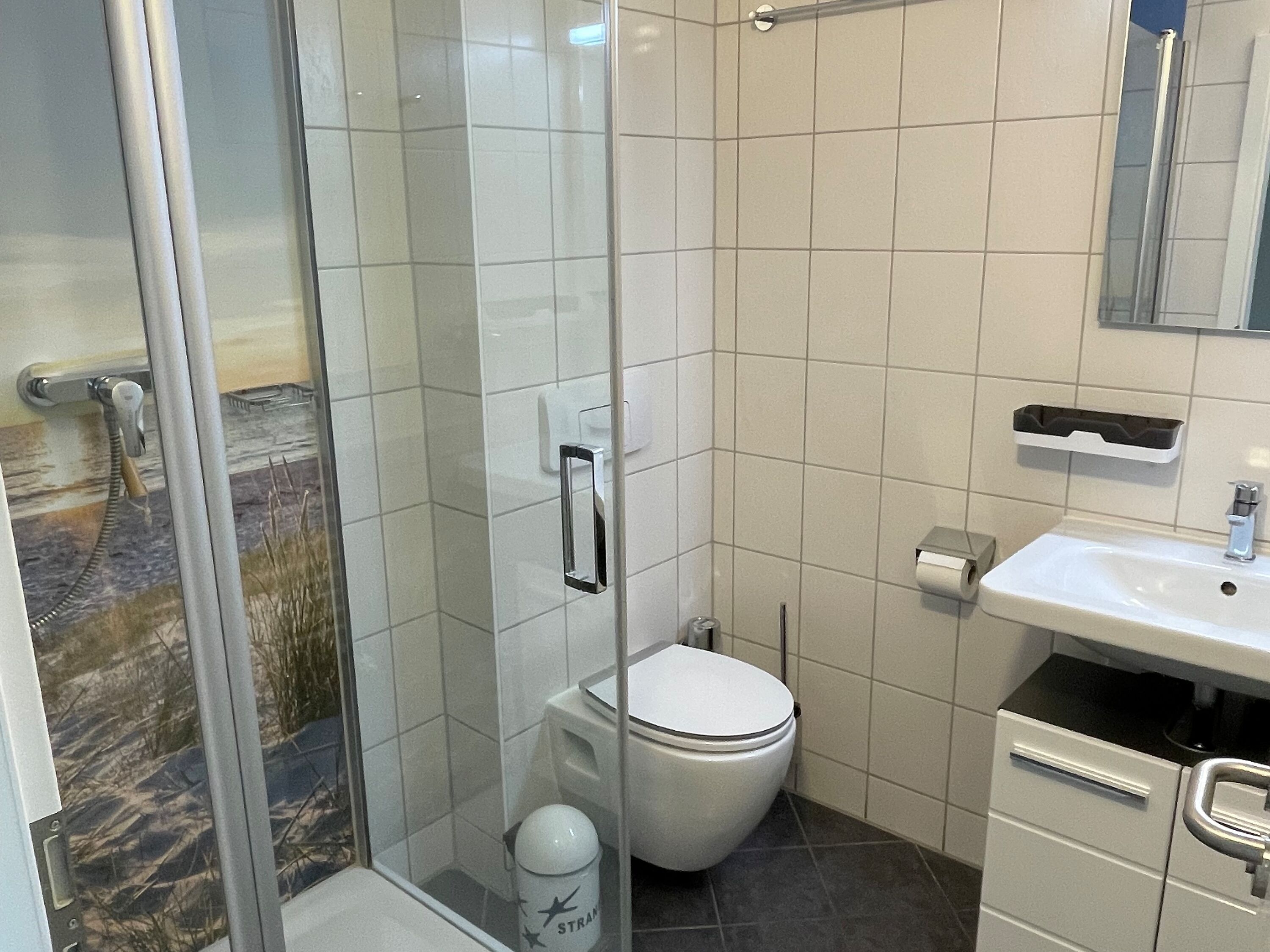Die komplette Wohnung ist mit Laminat ausgelegt. Das Duschbad/WC ergänzt die Ferienwohnung.
