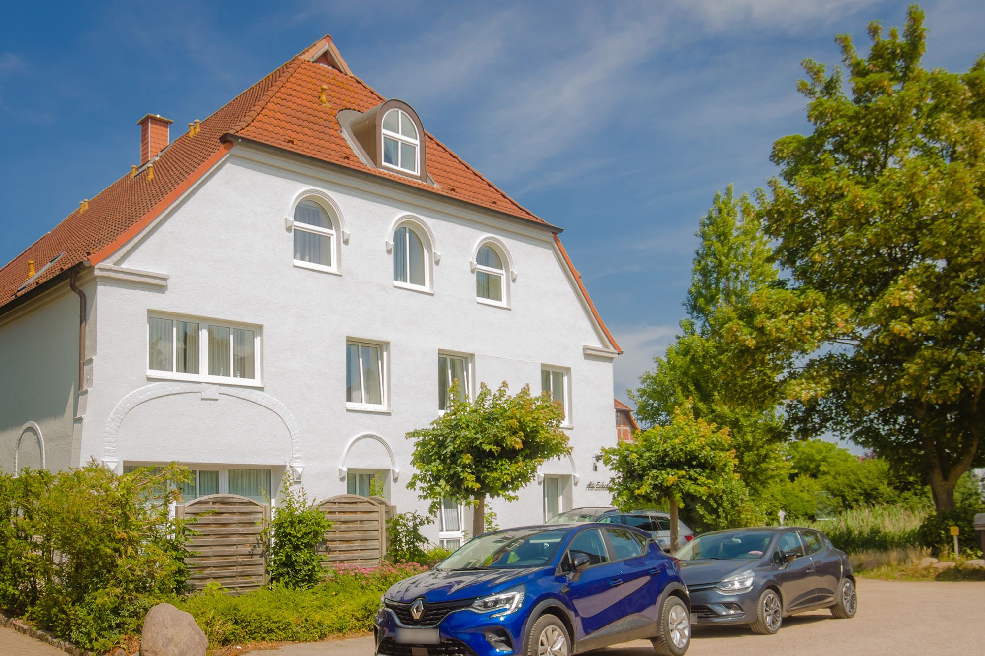 Maximal 1 Hund ist auf Anfrage und gegen Gebühr willkommen. Zum Apartment gehört ein eigener Stellplatz (Nr. 1) auf dem Grundstück. Ein gemeinschaftlicher Unterstellraum für Fahrräder befindet sich direkt neben dem Hauseingang.