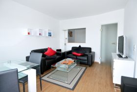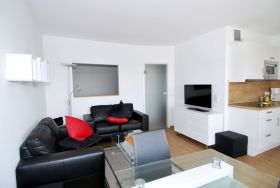 Der Wohnbereich ist mit Sitzgelegenheiten, einem Esstisch sowie einem Fernseher ausgestattet. Zusätzlich stehen WLAN / WiFi sowie ein Radio bzw. eine Musikanlage zur Verfügung, sodass auch gemütliche Abende in der Wohnung entspannt gestaltet werden können.