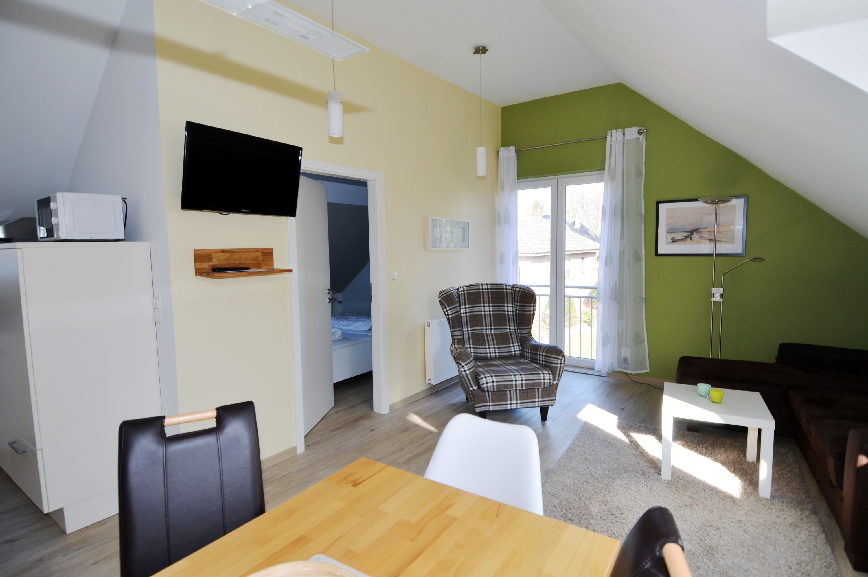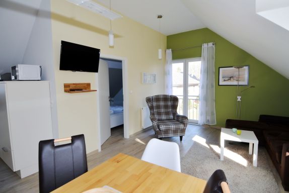 Herzstück der Wohnung ist der Wohn- und Essbereich, der freundlich gestaltet ist und ausreichend Platz für entspannte Stunden bietet. Hier können Sie den Tag gemütlich beginnen oder am Abend zur Ruhe kommen. Ein Fernseher sowie WLAN / WiFi stehen Ihnen für Unterhaltung und digitale Annehmlichkeiten zur Verfügung.