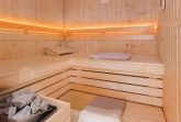 Von den Schlafzimmern erreichen Sie bequem die zwei modernen Badezimmer mit Fussbodenheizung, ebenerdigen Duschen, 1x Wanne, Handtuchwärmer, Waschbecken und WC. Eine integrierte Sauna steht zur Nutzung bereit. Hier erfrischen Sie sich ganz leicht und holen sich die Entspannung von einem ereignisreichen Urlaubstag zurück. Ein Waschtrockner gehört ebenfalls zur Ausstattung.