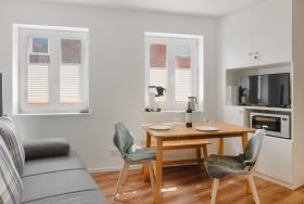 Die Regelbelegung ist für 2 Personen. Durch die vorhandene Schlafcouch steht jedoch zum einen eine Fluchtmöglichkeit bereit, sofern das Schnarchen des Mitmenschen zu heftig ist. Zum anderen ist in Ausnahmefällen auch eine Belegung mit maximal 3 Erwachsenen gegen Aufpreis möglich. Jeder Raum hat 2 Fenster, die zum Sichtschutz und zur Verdunklung mit Plissees ausgestattet sind.