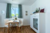 Im gemütlichen Wohnbereich laden bequeme Polstergarnituren und ein Flachbildfernseher zu geselligen Abenden ein. Der Essbereich ist im Wohnbereich integriert und ein Tisch mit 4 Stühlen bietet hier ausreichend Platz zum gemeinsamen Essen.
