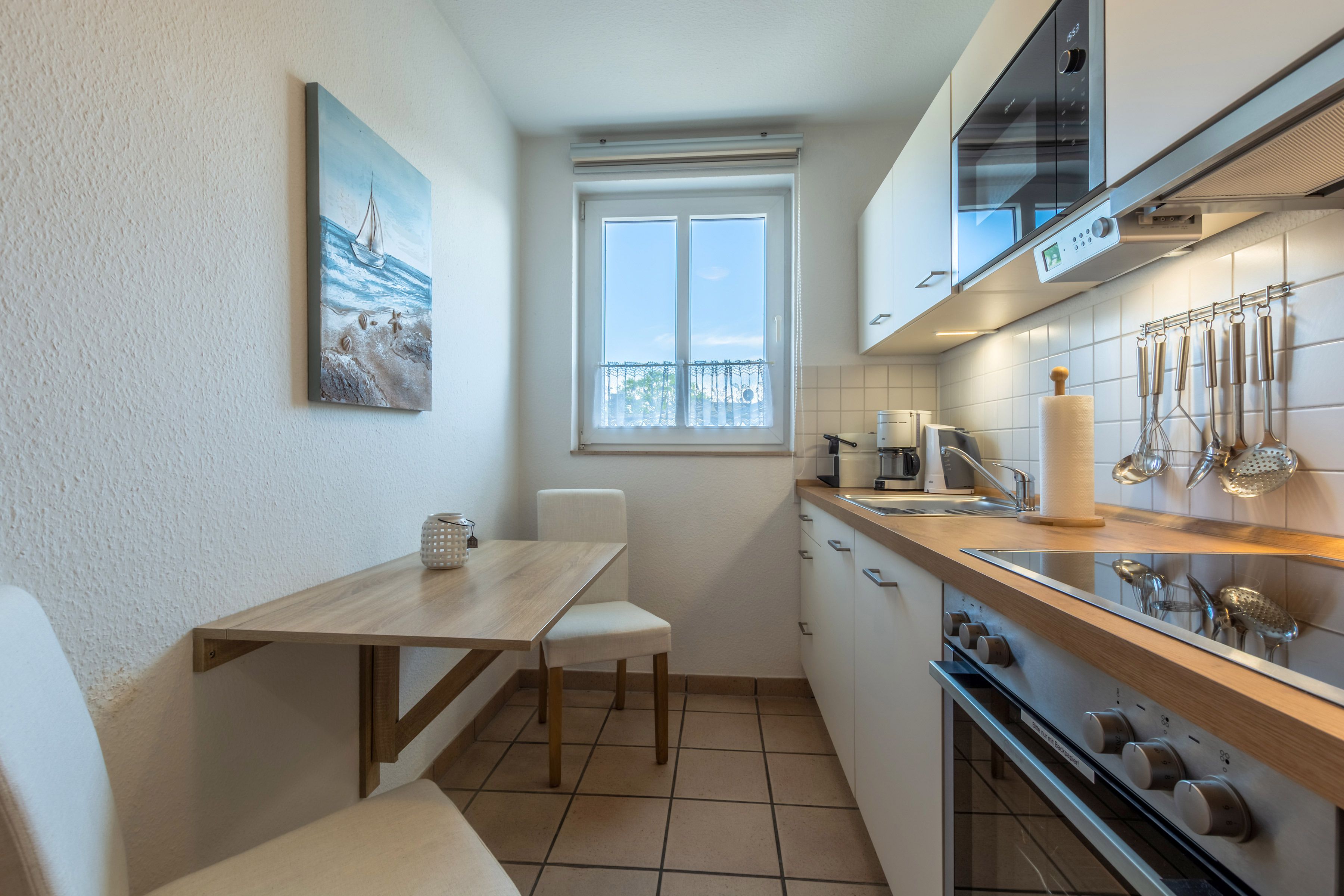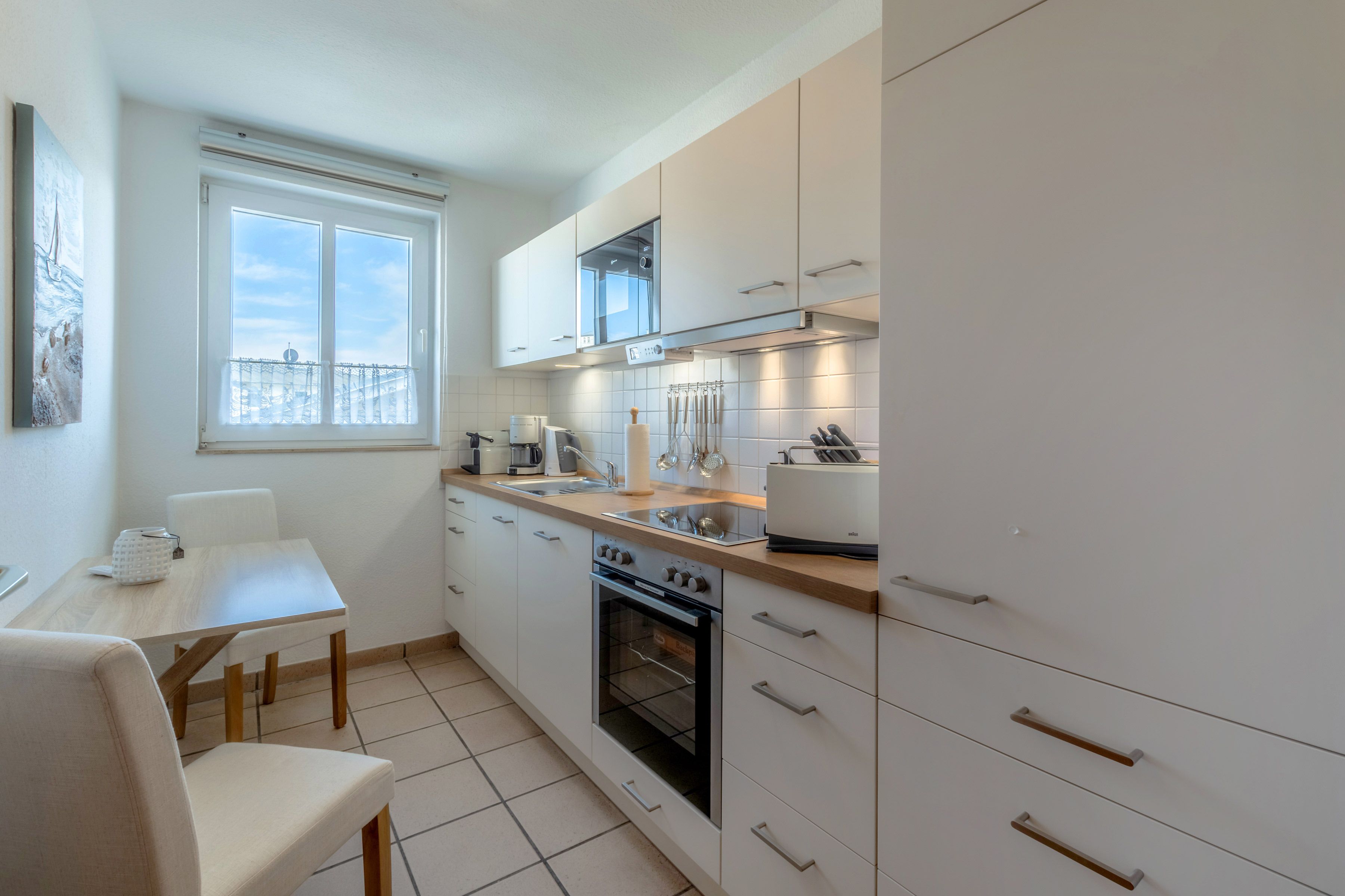 Die separate Küche ist mit einem Kühlschrank mit Gefrierfach, einem Geschirrspüler und einem Backofen mit Kochfeld ausgestattet. Eine Kaffeemaschine, ein Toaster, ein Eierkocher und ein Wasserkocher stehen Ihnen hier selbstverständlich zur Verfügung.