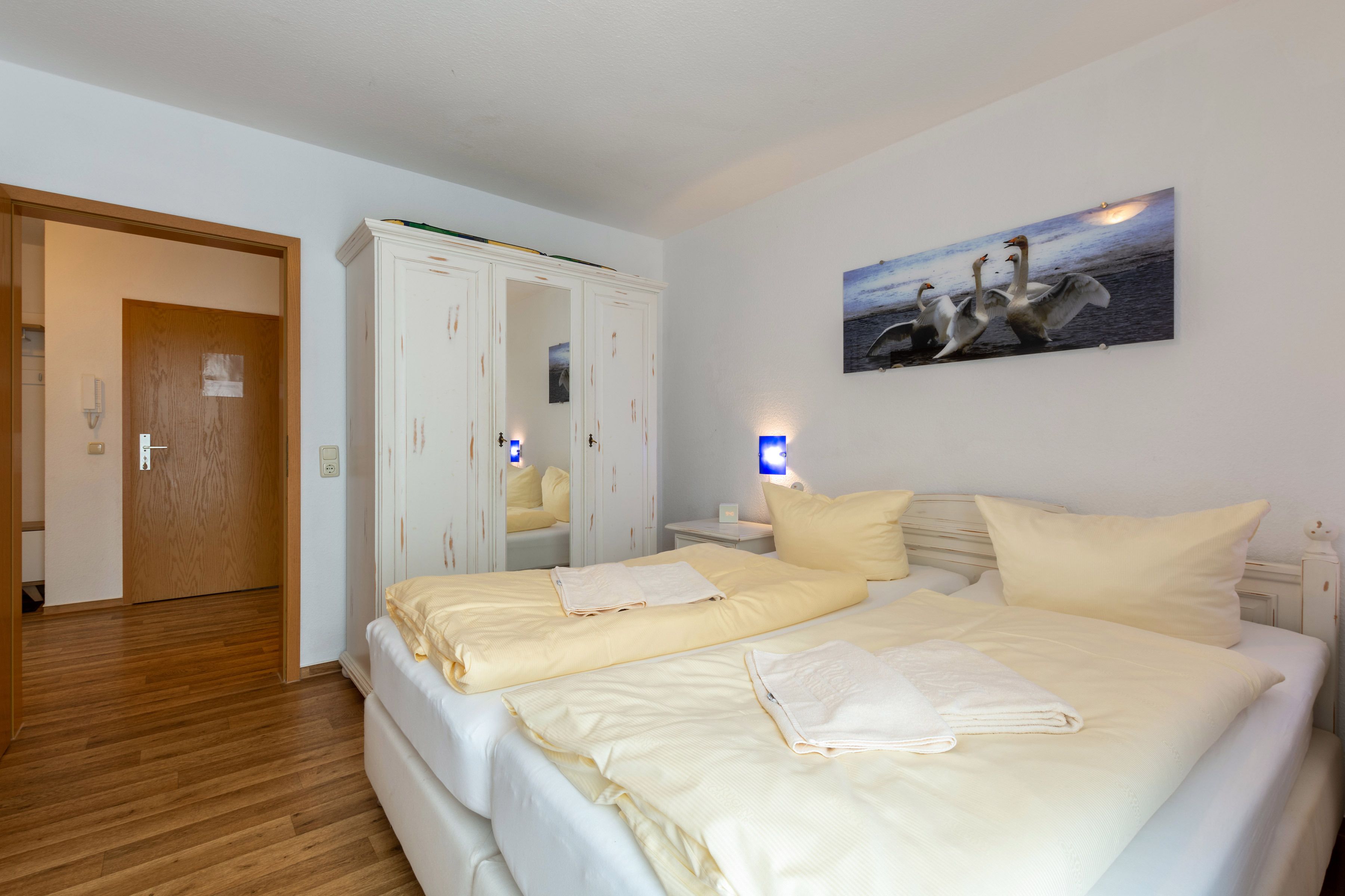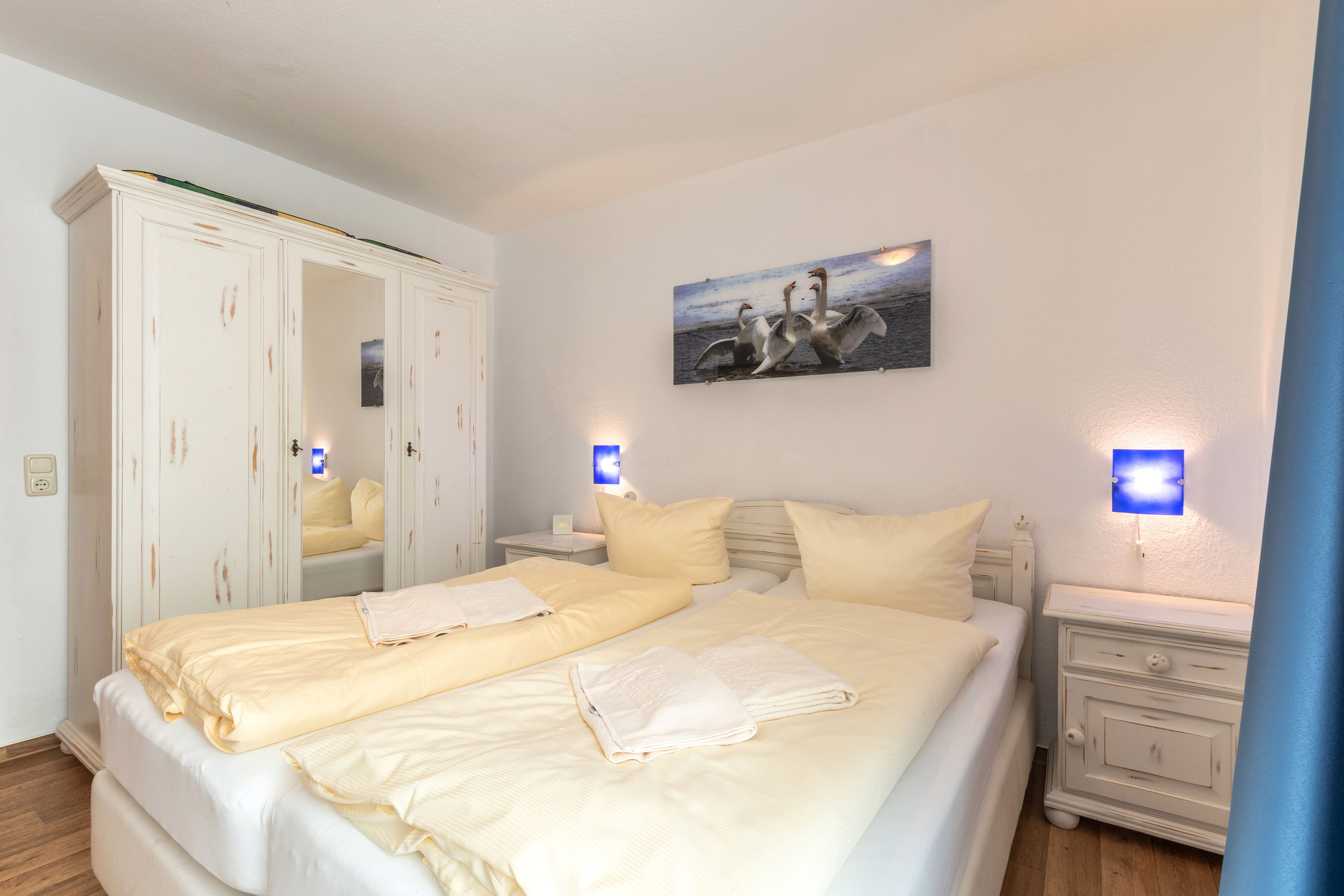 Im Schlafzimmer bietet Ihnen ein Doppelbett ausreichend Platz für einen erholsamen Schlaf. Ihre Urlaubskleidung können Sie im geräumigen Kleiderschrank unterbringen.