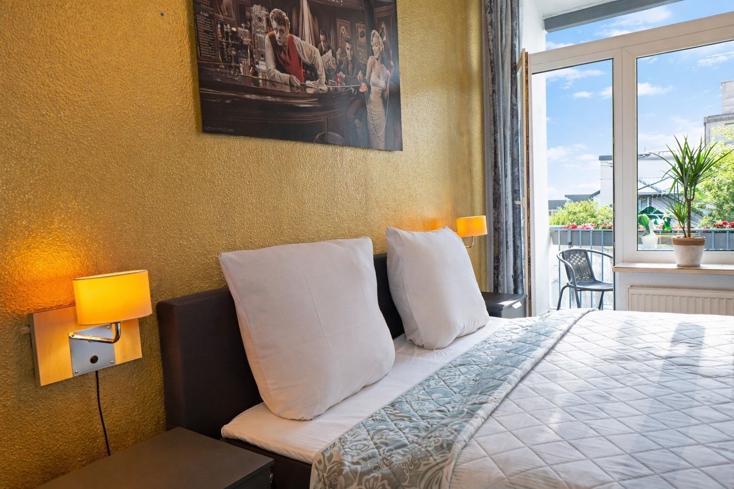 Ein besonderes Highlight der „Royal Suite“ ist der großzügige Balkon, der Ihnen die Möglichkeit bietet, die frische Luft und den Ausblick über die Stadt zu genießen. Hier können Sie entspannte Abendstunden verbringen oder bereits den Tag mit einem Frühstück im Freien beginnen.