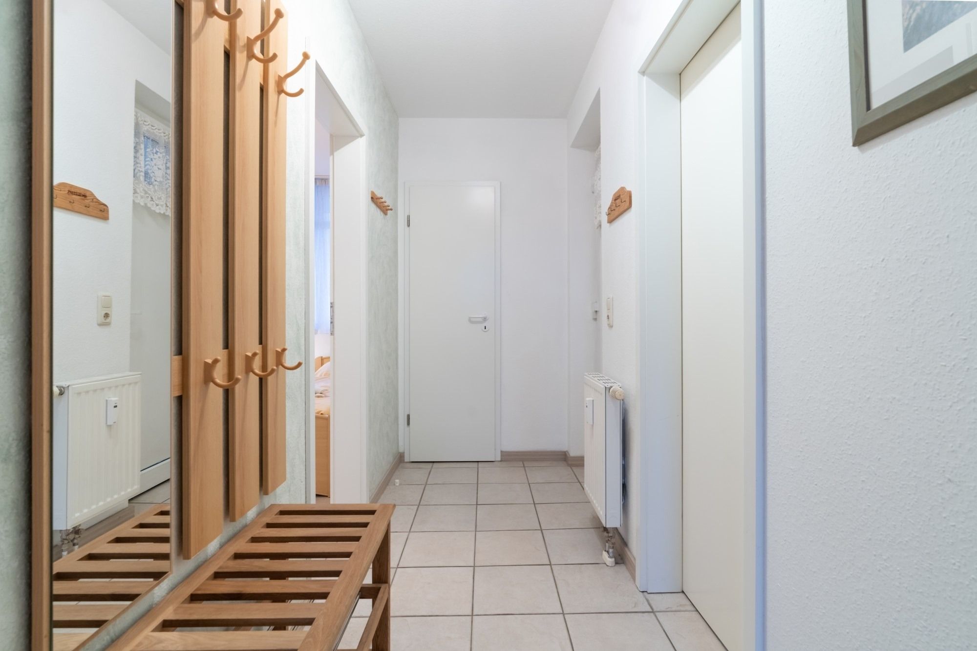 Die 54 m ² große Ferienwohnung 27 befindet sich in der 2. Etage im Haus Roland (linkes Gebäude vom Parkplatz aus gesehen). Sie bietet mit ihren drei Zimmern ausreichend Platz für bis zu 4 Personen.