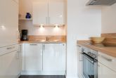 Die hier angrenzende Küchenzeile ist mit einem Kühlschrank mit Gefrierfach, einem Geschirrspüler und einem Backofen mit Cerankochfeld ausgestattet. Eine Kaffeemaschine, ein Toaster und ein Wasserkocher stehen Ihnen hier selbstverständlich zur Verfügung.