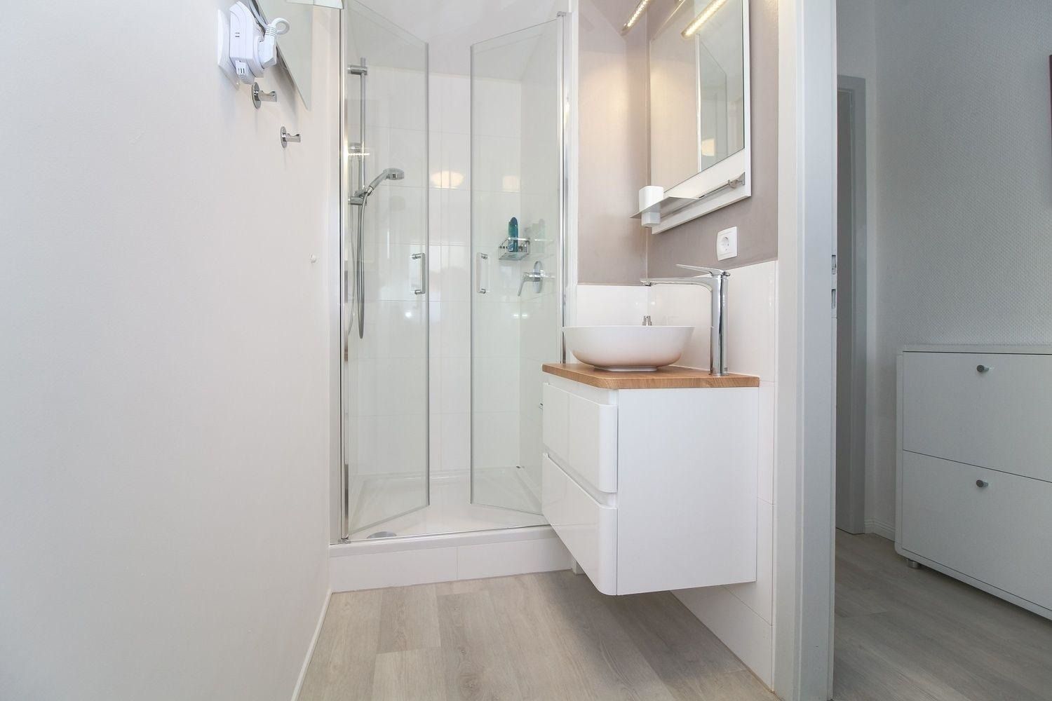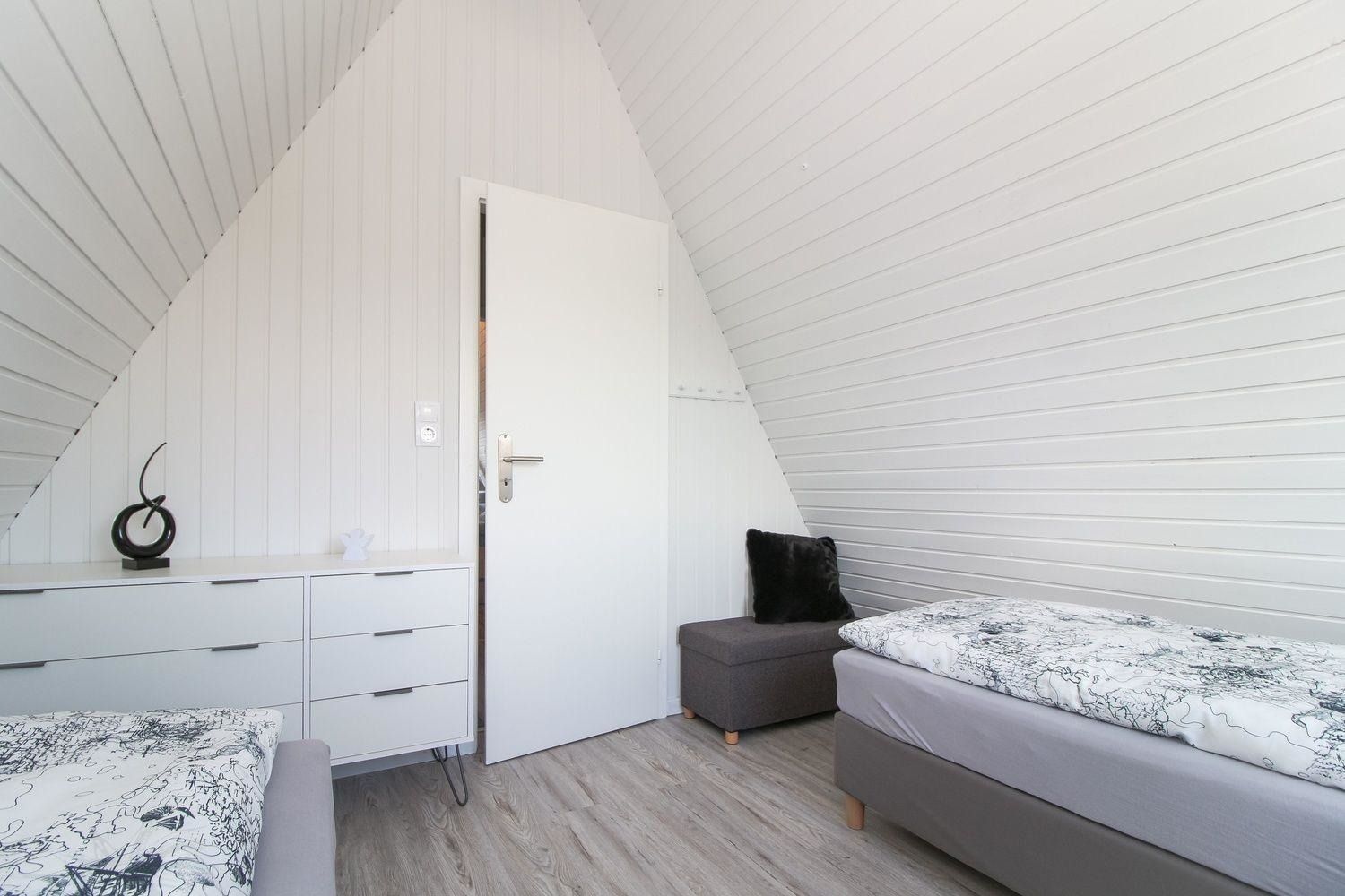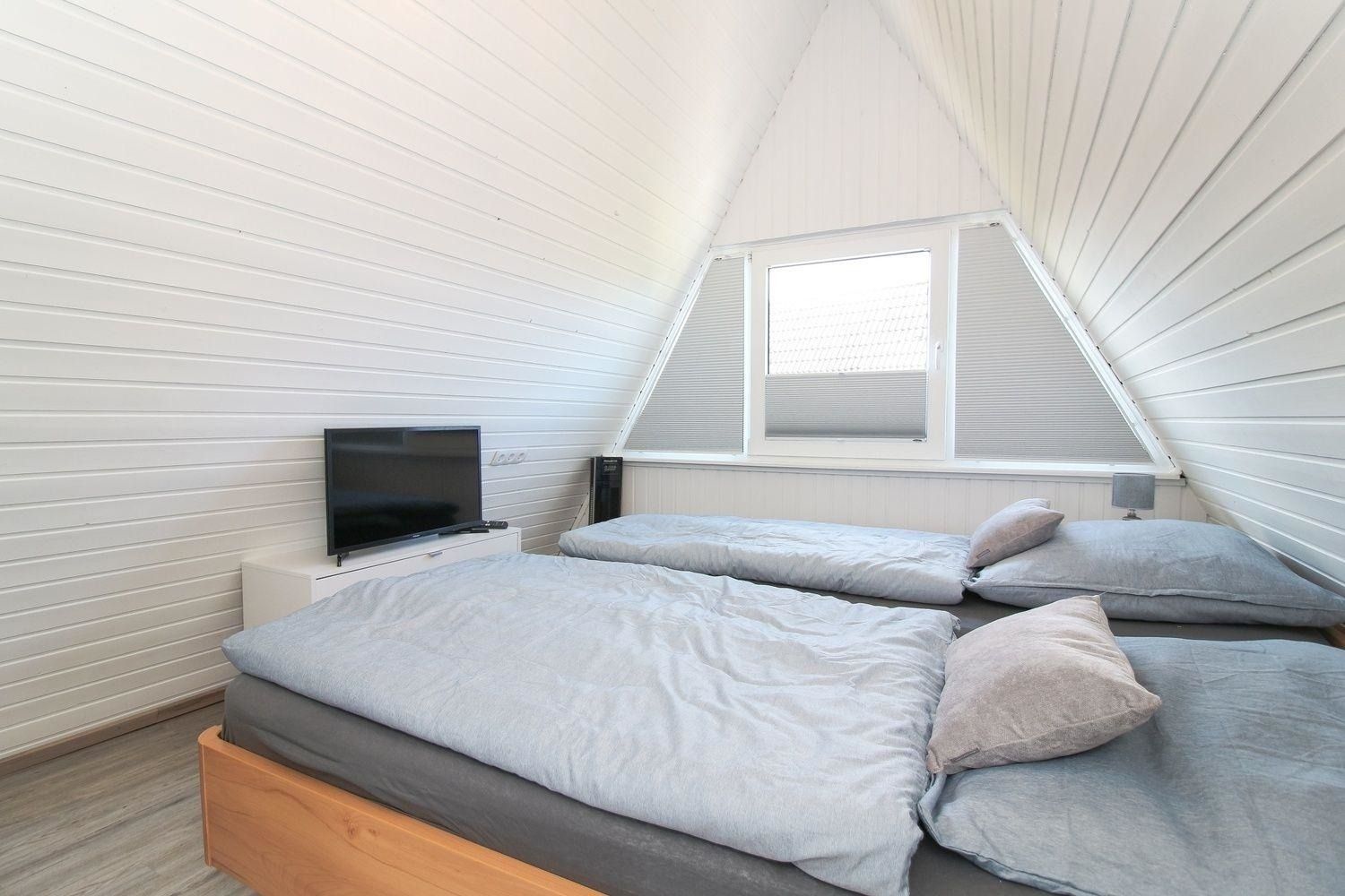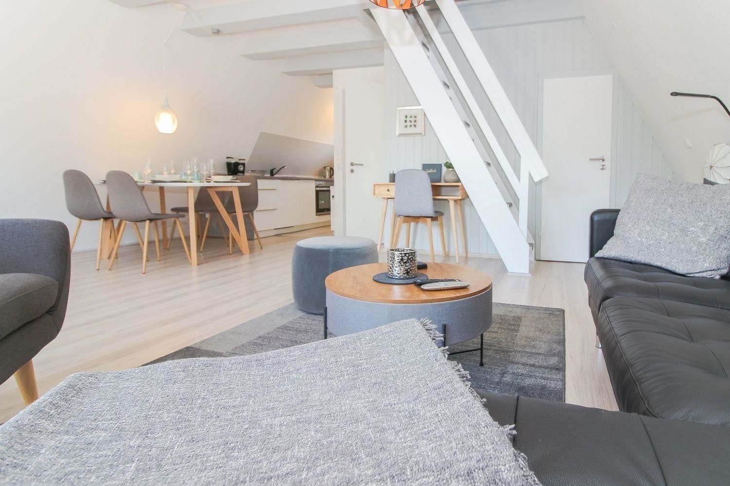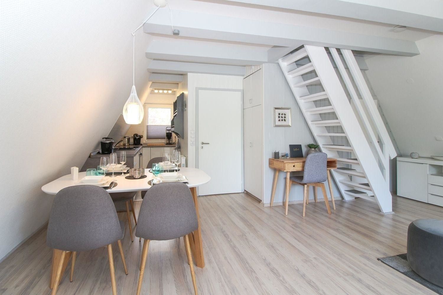 Neben einem Wohnzimmer mit separatem Essplatz finden Sie im Erdgeschoss eine vollständig ausgestattete Küche und ein modernes Duschbad. Im Obergeschoss bieten zwei Schlafzimmer bequem Platz für jeweils zwei Erwachsene.