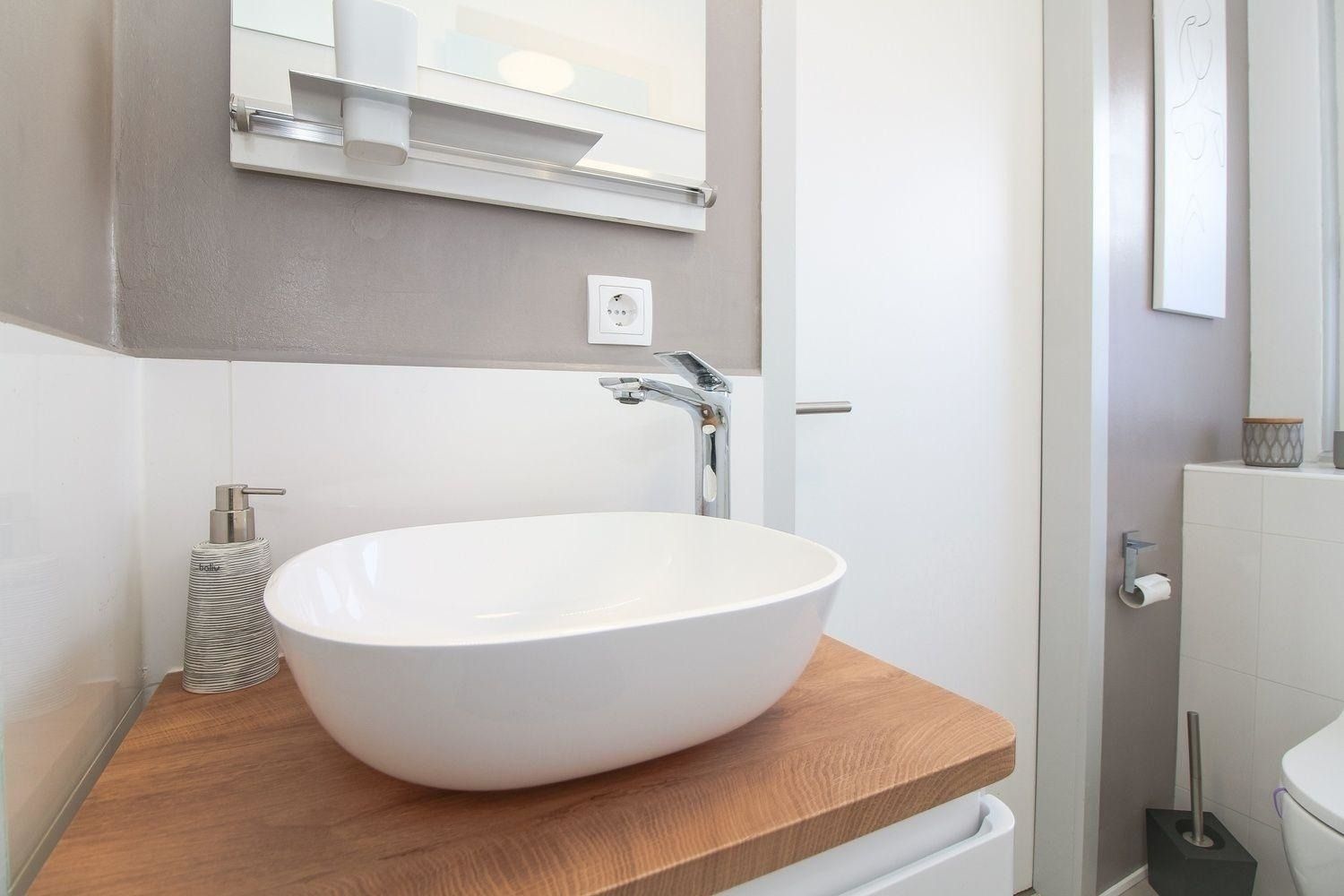 Eine Erstausstattung (Spülmaschinentab, WC-Papier, kl. Flasche Spülmittel, Spültuch und Topfschwamm) ist vorhanden.