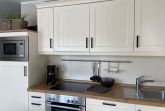 Die Einrichtung der Küche und des Wohnbereichs erfolgt im „gemütlichen Stil“: Hochwertige Landhaus– Einbauküche mit Spülmaschine, vollwertigem Herd mit 4 Platten Ceranfeld und Backofen, sowie großem Kühlschrank und Mikrowelle. Die Ausstattung mit Kaffeemaschine, Senseo Maschine, Wasserkocher, Toaster und entsprechendem Geschirr ist selbstverständlich.