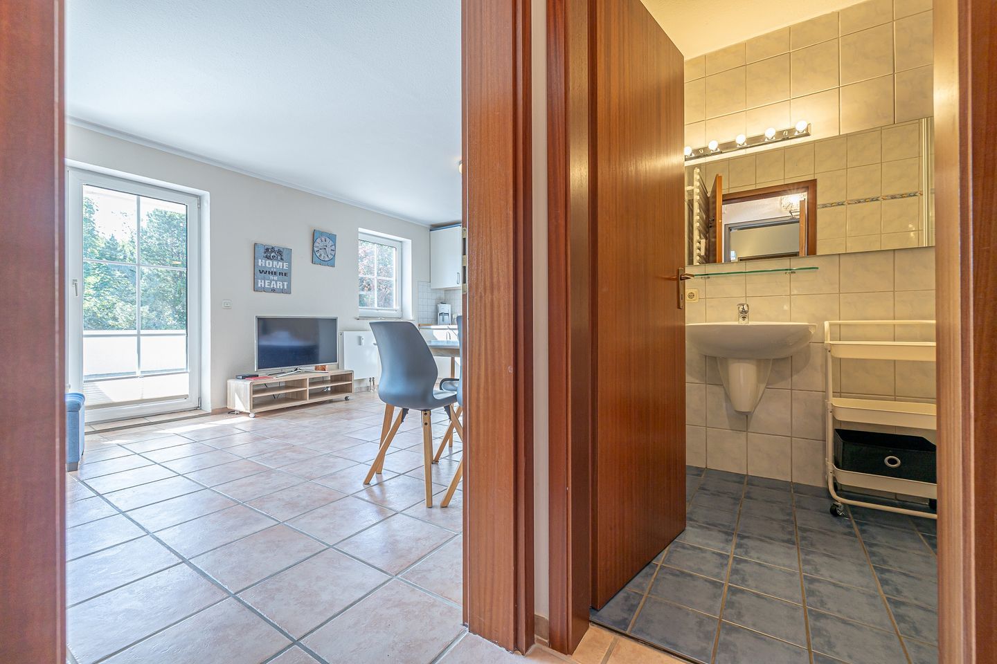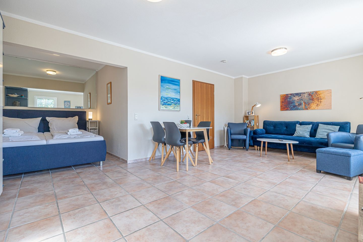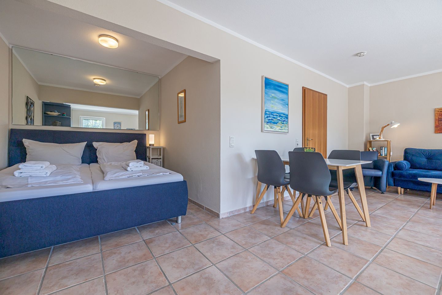 Willkommen im Studio-Apartment Fördeblick II, das sich im Hochparterre der gepflegten und idyllisch am Strand gelegenen Wohn- und Ferienanlage Strandresidenz Wassersleben befindet. Dieses charmante Apartment mit einer großzügigen 30 qm großen Terrasse bietet mit seinen zwei Einzelbetten den idealen Rückzugsort für 2 Personen. Die moderne und voll ausgestattete Einbauküche ist bestens für Selbstversorger geeignet. Ein komfortables Duschbad mit WC rundet das Apartment ab.