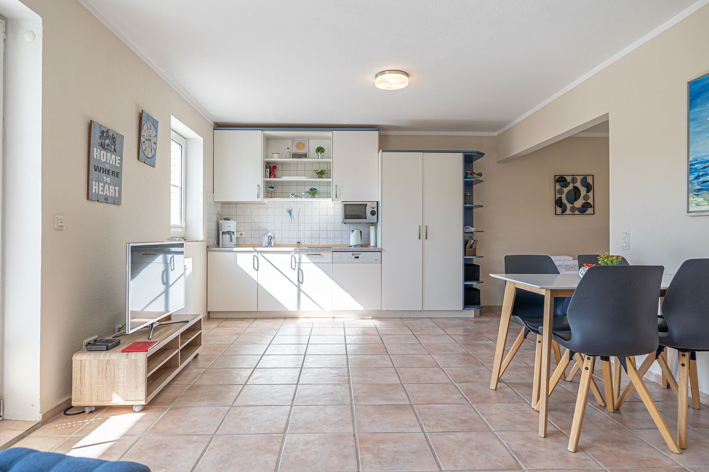 Der Strand liegt nur wenige Schritte entfernt auf der gegenüberliegenden Straßenseite, was Ihnen unmittelbare Nähe zu erholsamen Stunden am Meer bietet. Genießen Sie Ihren Aufenthalt im Fördeblick II und erleben Sie die malerische Aussicht auf Strand und Förde von Ihrer großzügigen Terrasse aus.