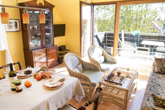 Die 49 qm große Nichtraucher-Wohnung im 2. OG für bis zu 4 Personen besteht aus einem Wohnraum mit Couch und Sesseln, einem Schlafraum mit Doppelbett (ohne Fußbrett), einem Kinderzimmer mit 2 Einzelbetten (200x90x + 170x90) über Eck, Küche mit Spülmaschine, Ceranfeld mit 4 Kochstellen, Mikrowelle und Kühlschrank mit 3-Sterne-Gefrierfach. Duschbad/WC. Die Wohnung ist komplett mit Laminat ausgelegt. Ein Babybett kann bereitgestellt werden. Die möblierte Loggia ist nach Süden ausgerichtet. Die Wohnung befindet sich in der 2. Etage eines zweigeschossigen Ferienhauses im Kurviertel von Büsum (Meeresluftzone), 200 m von Grün- und Sandstrand und dem Nationalpark Wattenmeer entfernt. Zum Zentrum sind es ca. 15 Gehminuten.
