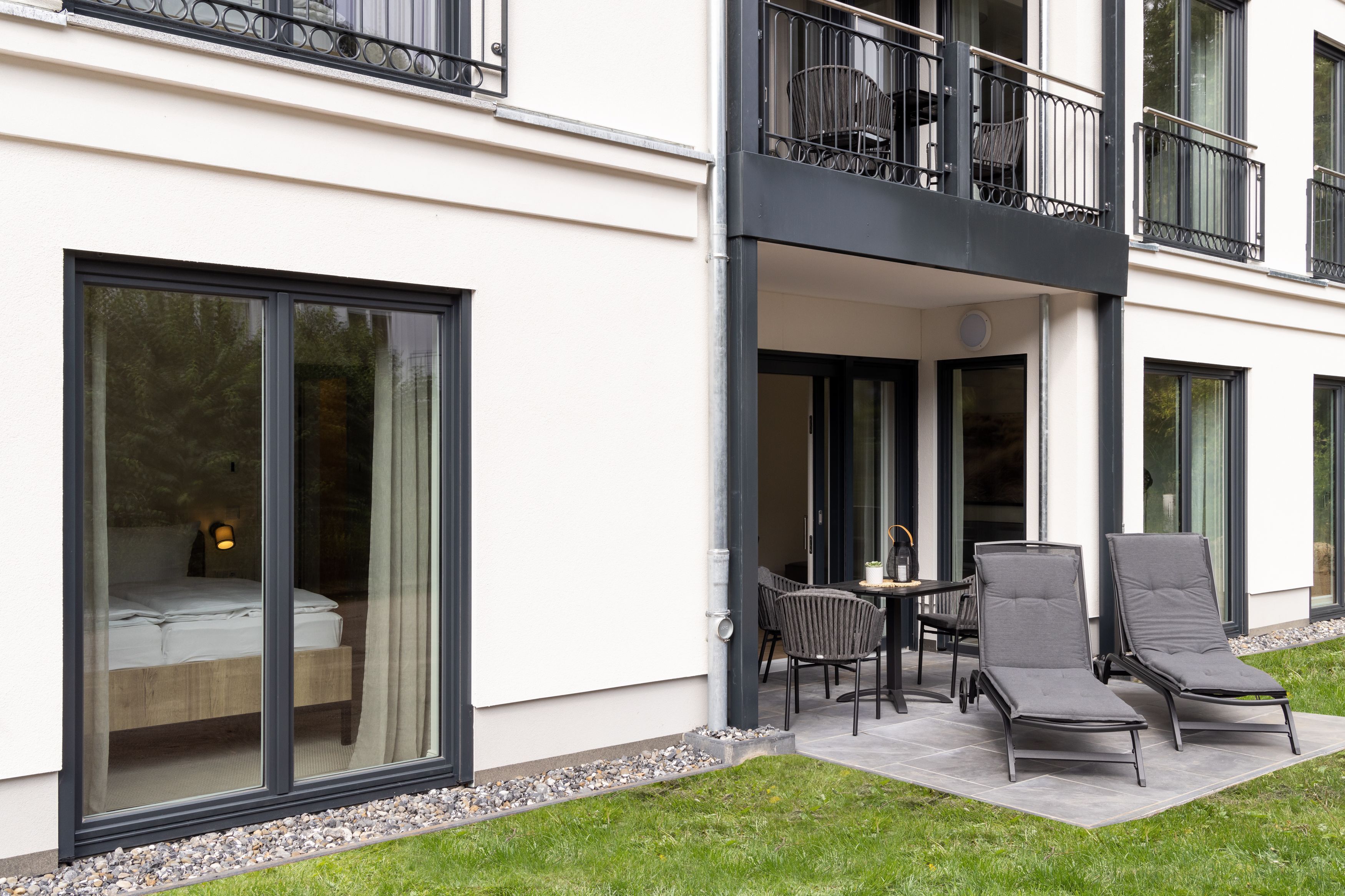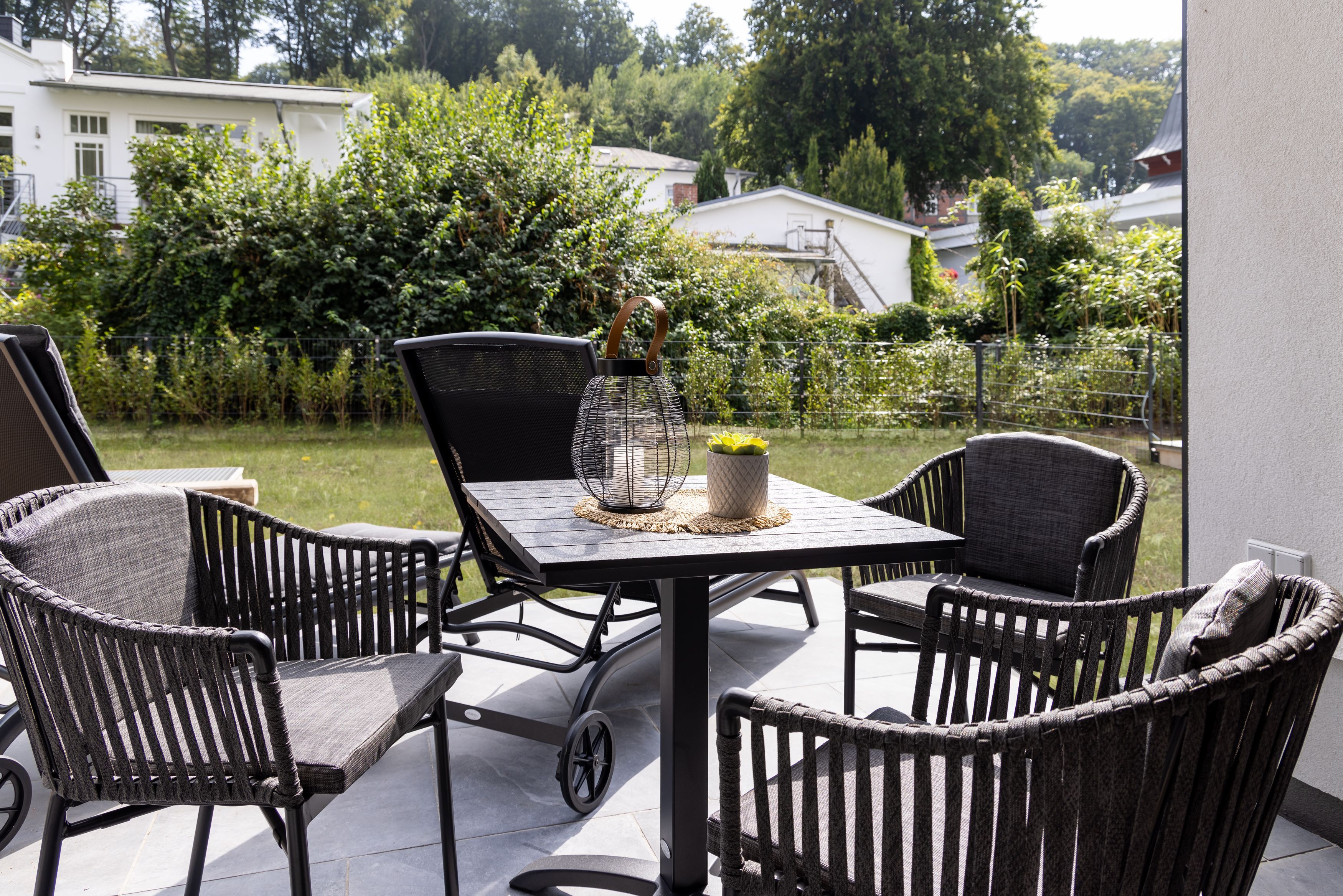 Zum Verweilen steht Ihnen ein wunderbarer, eingezäunter und großzügiger privater Garten (32 m²) mit bequemen Gartenliegen zur Verfügung.