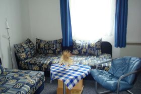 Die circa 25 m² große Ferienwohnung befindet sich im Erdgeschoss und ist über einen separaten Eingang zu erreichen. Ausgestattet ist diese mit einem kombinierten Wohn- und Schlafraum, mit zwei Einzelliegen, einer Essecke und SAT-TV, einer separaten Küche, mit zwei Kochplatten, einem Kühlschrank und Wasserkocher. Ebenfalls vorhanden ist ein Bad mit Dusche und Toilette. Auf der Terrasse stehen Ihnen Sitzgelegenheiten zur Verfügung. Energie wird extra berechnet zum aktuellen Ortstarif.