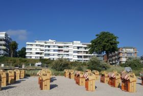 Die ca. 45 m² große Wohnung liegt direkt am Strand (Hang) im 1. Stock eines Apartmenthauses mit Blick auf die Ostsee. Der herrliche Blick auf den Strand und die Lübecker Bucht ist unverbaubar. Hinter dem Haus liegt der PKW-Stellplatz, sowie der in der Hochsaison beheizbare Swimmingpool .