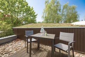 Unsere stilvolle 42m² Ferienwohnung befindet sich in der mediterran gestalteten Ferienanlage Auf den Höfen in Kühlungsborn Ost – einem Ort, der Erholung und Urlaubsgefühl vom ersten Moment an verspricht. Die charmante Anlage bietet Ihnen alles, was Sie für einen entspannten Aufenthalt brauchen: einen großzügigen Außenpool mit Liegen (je nach Wetterlage nutzbar von Mitte Mai bis Mitte September) sowie eine gemütliche Sauna mit Münzautomat – ideal zum Entspannen, Lesen oder Genießen.