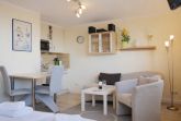 Diese charmante Wohnung im 1. Obergeschoss bietet alles, was Sie für einen entspannten Aufenthalt zu zweit brauchen. Auf 27m² erwartet Sie ein liebevoll eingerichtetes Wohn-Schlafzimmer mit bequemem Sofa, TV und kleinem Esstisch – perfekt zum Entspannen oder für ein gemütliches Frühstück am Morgen.