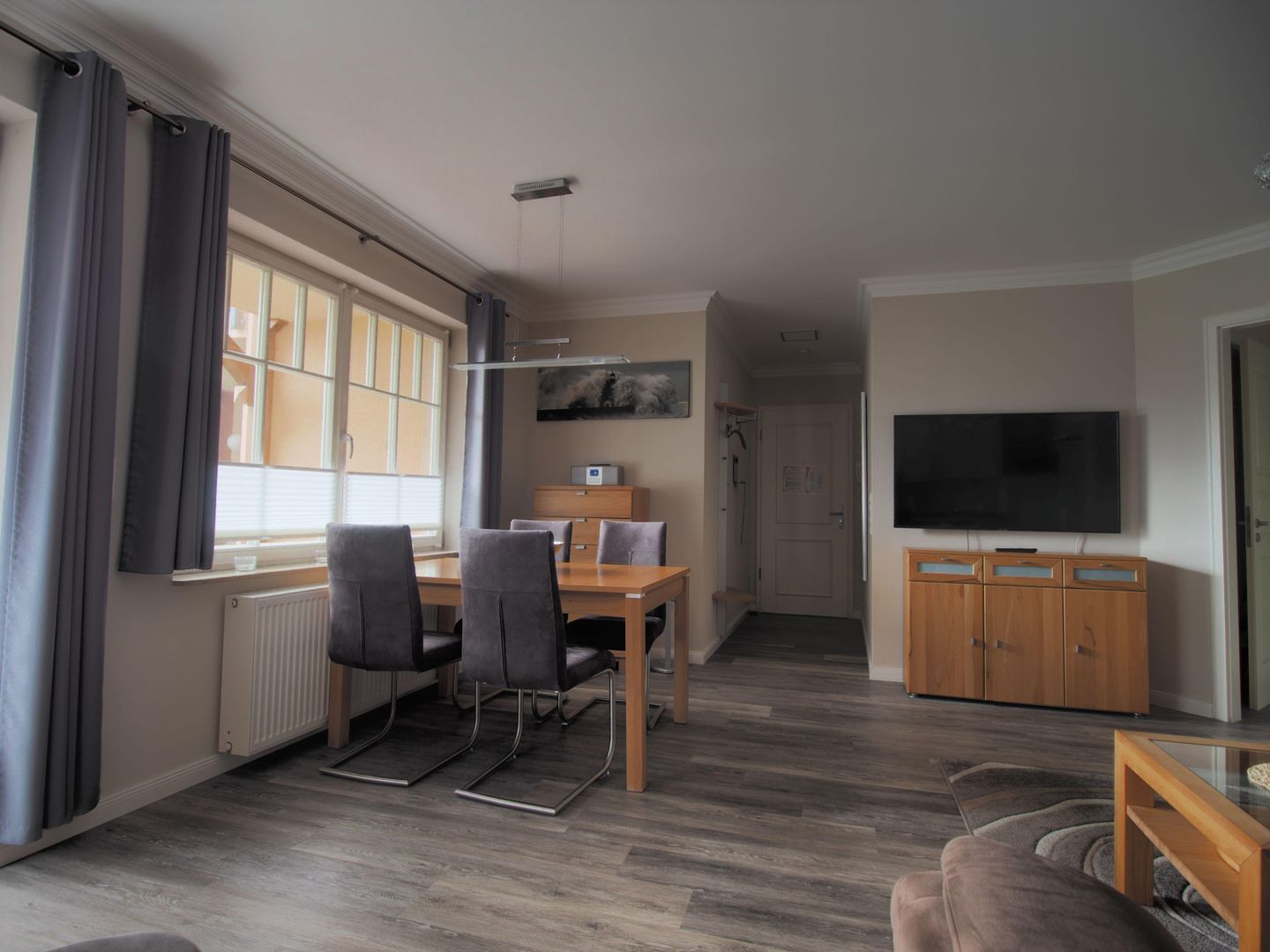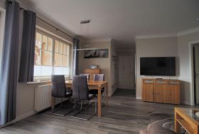 Freuen Sie sich auf 72 m² modernen Wohnkomfort für bis zu 4 Personen – ideal für Paare, Familien oder Freunde. Die großzügige Ferienwohnung bietet zwei separate Schlafzimmer mit bequemen Doppelbetten und geräumigen Kleiderschränken. In beiden Schlafzimmern sorgt ein zusätzlicher TV für entspannte Abende im Bett.