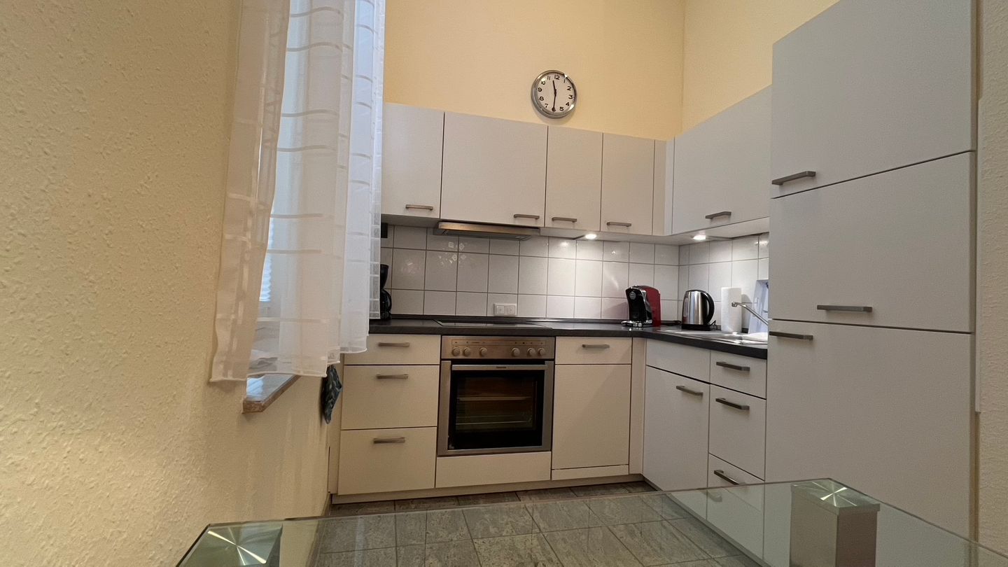 Diese liebevoll eingerichtete 43-m²-Unterkunft bietet den perfekten Rahmen für einen entspannten Urlaub. Der helle Wohnbereich mit offener Küchenzeile schafft eine einladende Atmosphäre, in der Sie sich sofort wie zu Hause fühlen. Die Küche ist vollständig ausgestattet und lässt Ihnen alle Freiheiten – vom schnellen Frühstück bis zum gemütlichen Abendessen.