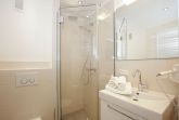 Die moderne, offene Einbauküche mit Fenster ist voll ausgestattet mit einem Geschirrspüler, einem 4-Platten-Herd, einem Kühlschrank mit 3-Sterne-Gefrierfach und sämtlicher Grundausstattung – dazu zählen Kaffeemaschine, Wasserkocher und Toaster. Das Schlafzimmer bietet ein komfortables Doppelbett sowie einen geräumigen Einbauschrank mit vier Türen und einen zusätzlichen TV für Unterhaltung. Zwei separate Badezimmerbereiche stehen zur Verfügung: Das neue Duschbad ist mit einer Dusche mit extraflachem Einstieg und einem Raindancer-Duschkopf, einem Waschtisch, einem Handtuchtrockner, WC und Fön ausgestattet, während ein zusätzliches Gäste-WC extra Komfort bietet.