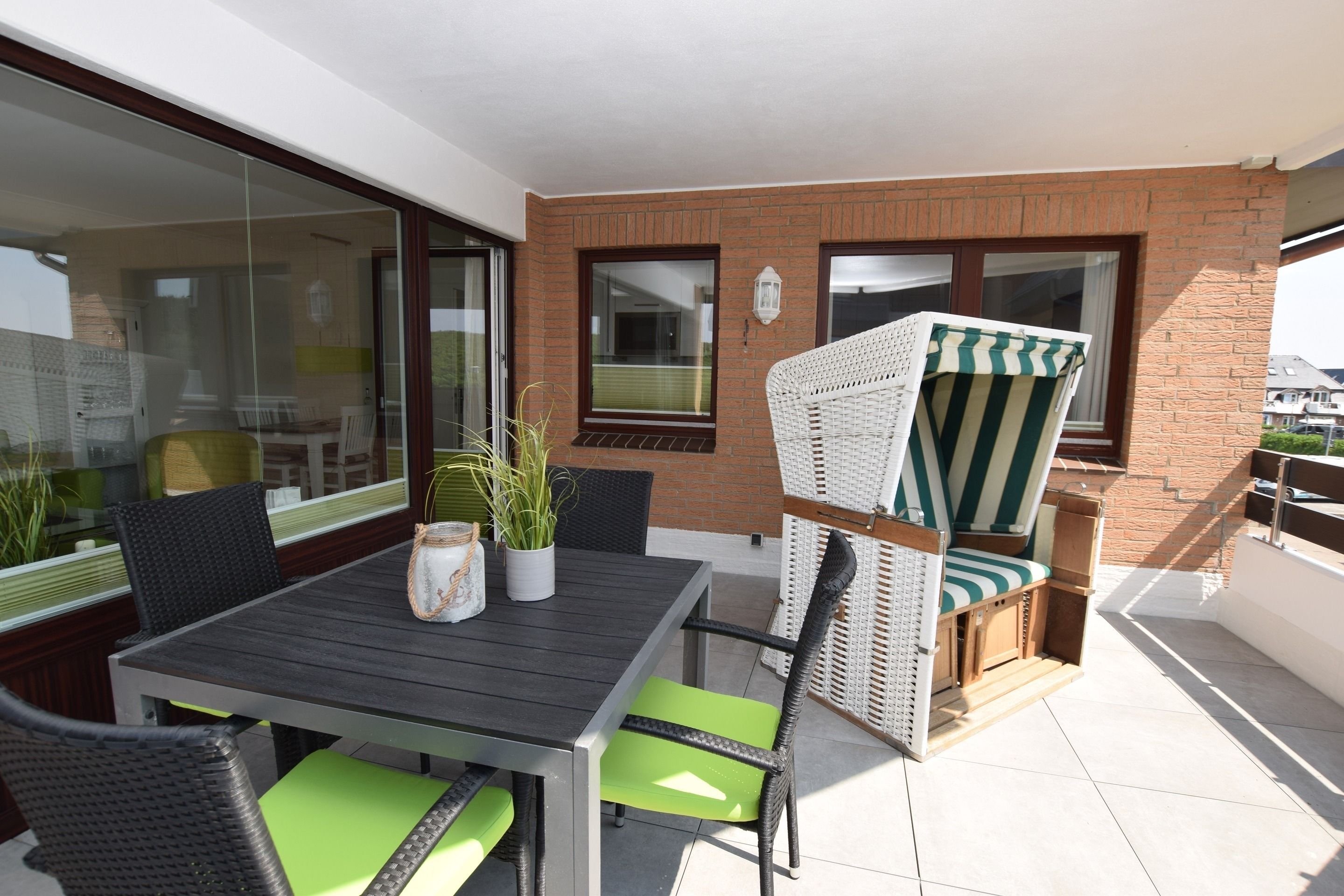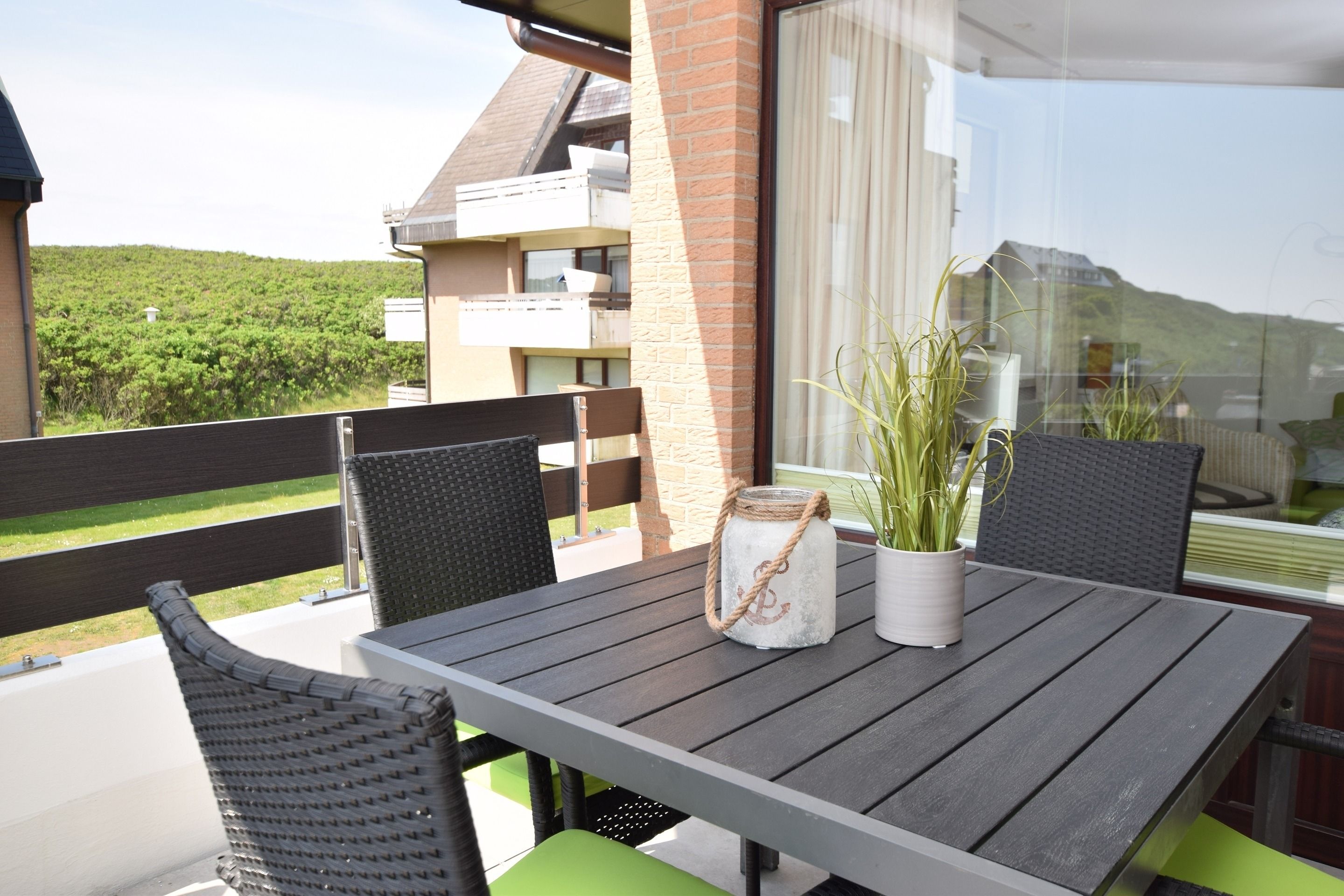 Willkommen in dieser exklusiven 2-Zimmer-Nichtraucher-Ferienwohnung, ca. 52 m² groß und gelegen in der 1. Etage – ideal für bis zu 4 Personen. Die Wohnung besticht durch einen großzügigen Süd-West-Balkon, der mit stilvollen Balkonmöbeln, Auflagen und einem traumhaften Blick über die Dünen zum Entspannen einlädt.