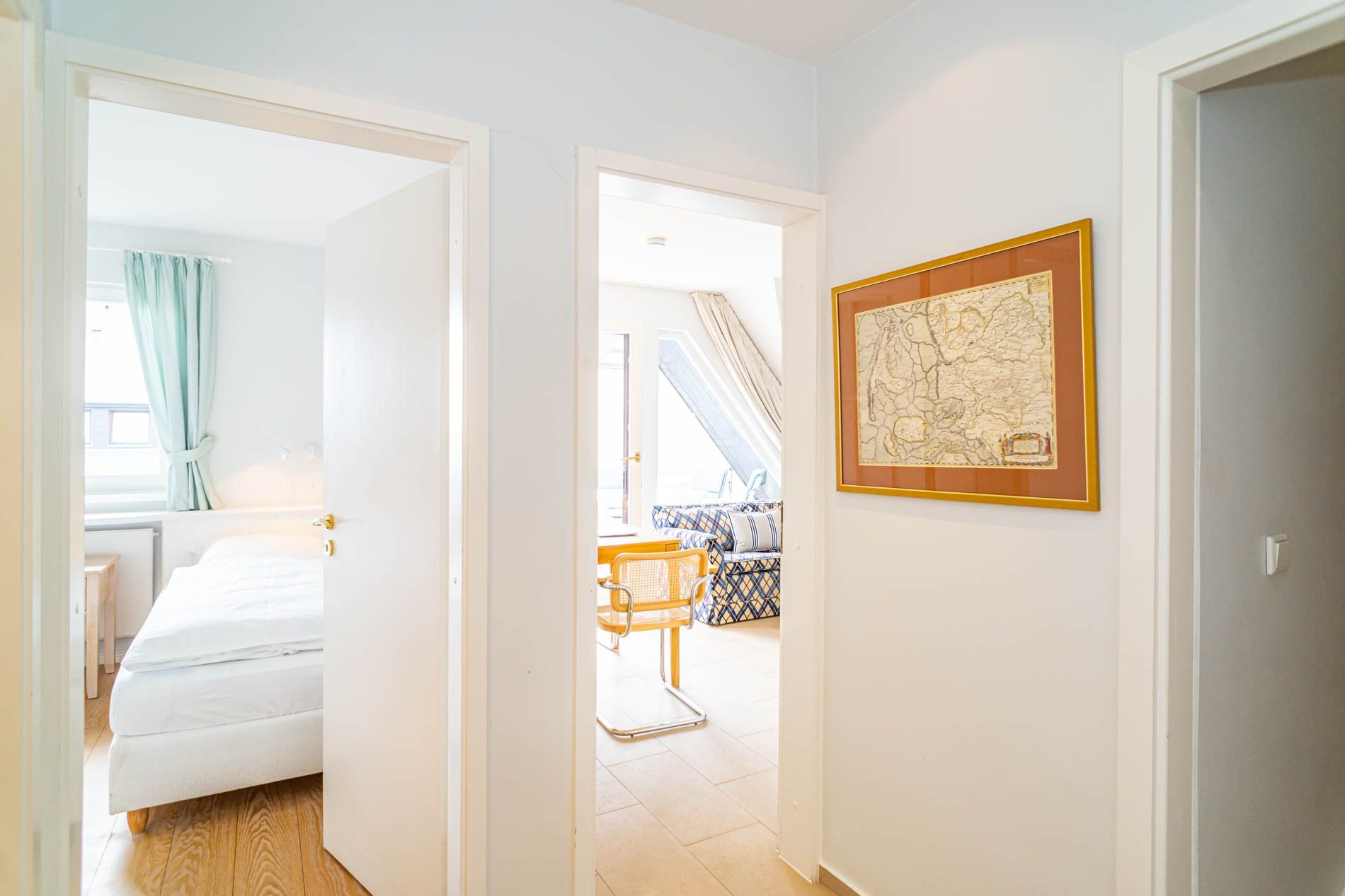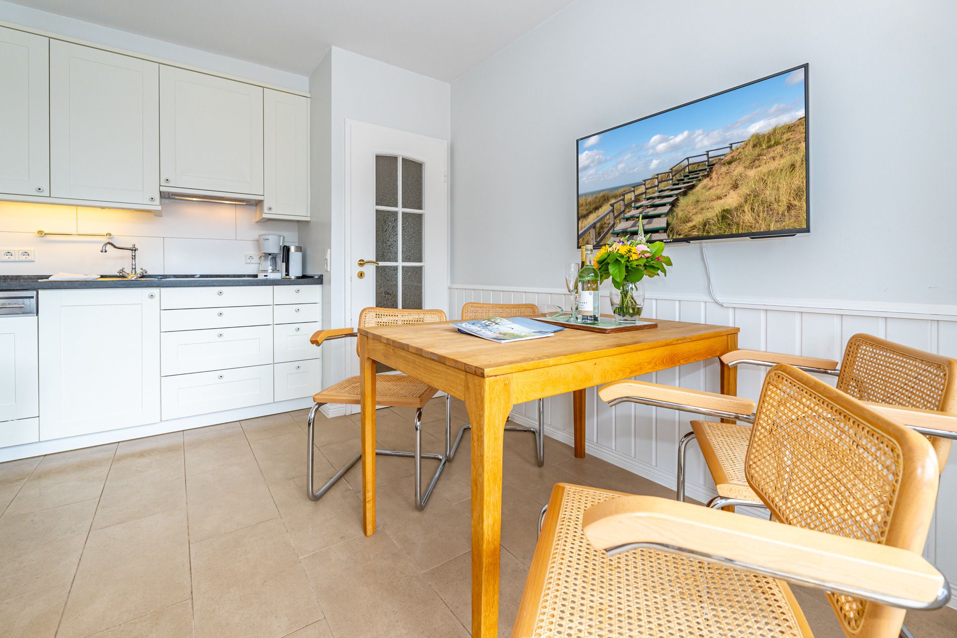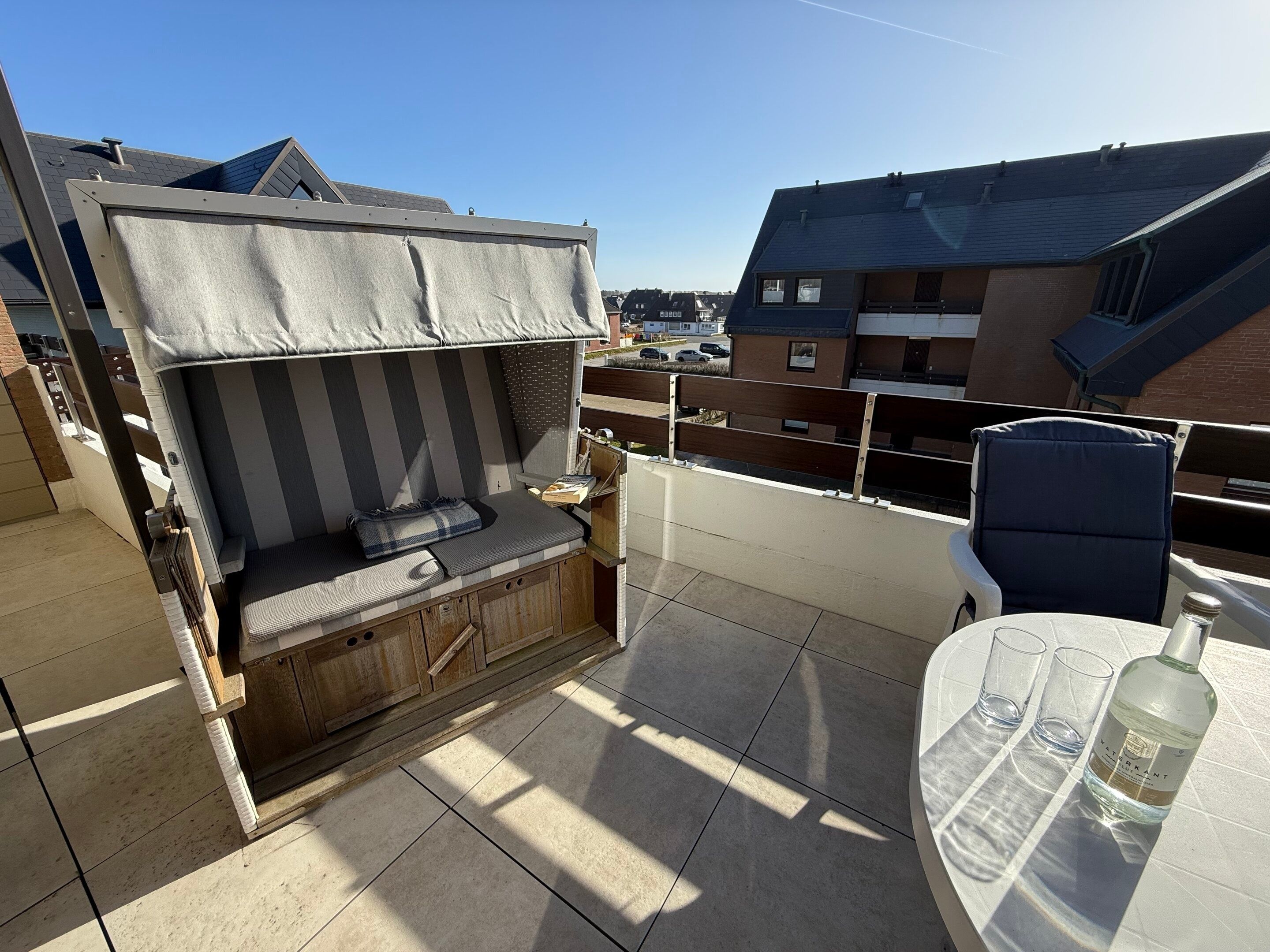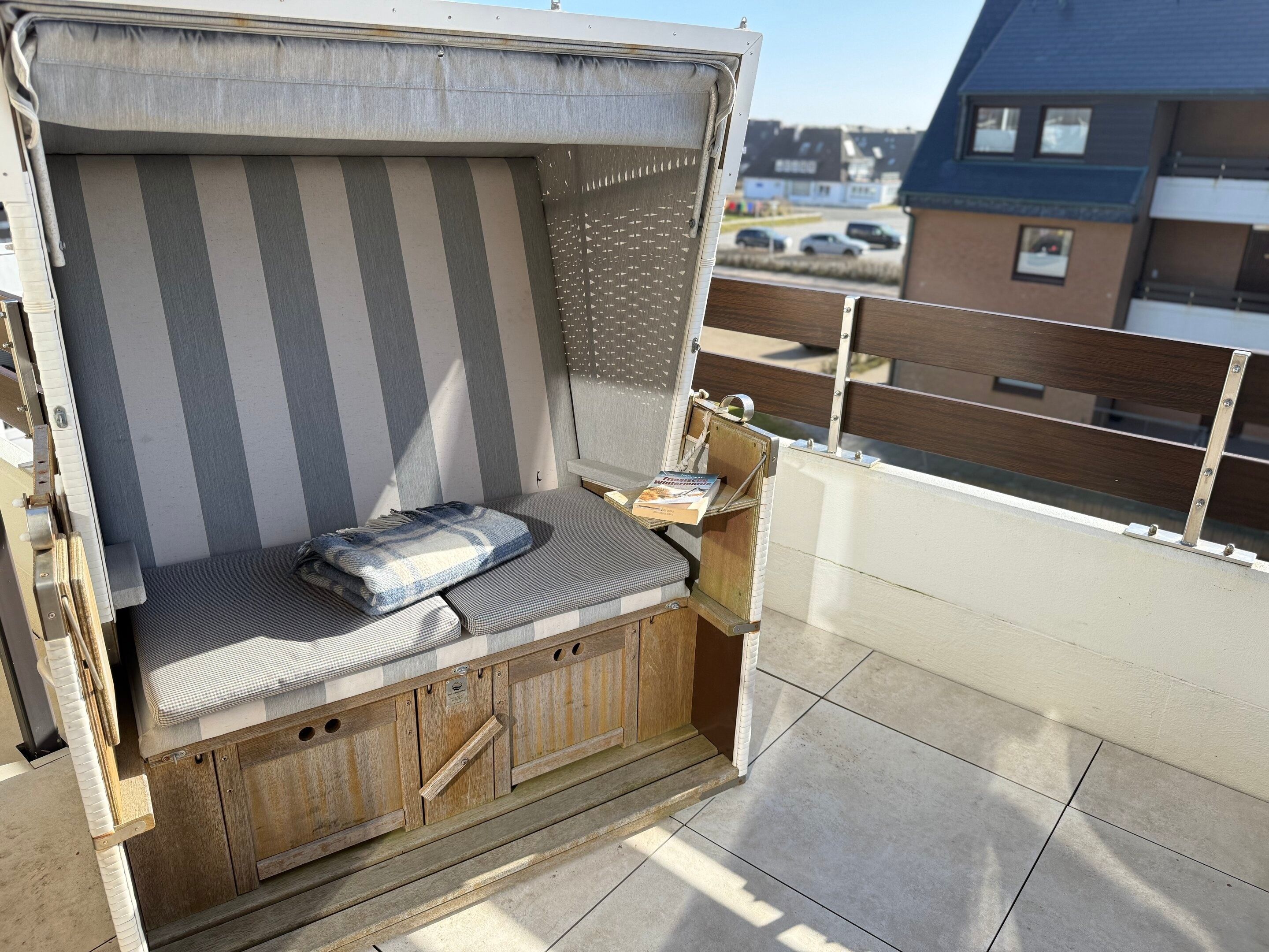 Diese hervorragend ausgestattete 2-Zimmer-Nichtraucher-Ferienwohnung mit ca. 79 m² Gesamtfläche bietet höchsten Komfort für bis zu 3 Personen. Sie liegt in der 2. Etage und verfügt über einen großzügigen Südbalkon, ausgestattet mit Balkonmöbeln, Auflagen und einem Strandkorb. Die zentrale und dennoch ruhige Lage direkt hinter den Dünen von Westerland macht sie zu einem perfekten Rückzugsort. Ein eigener PKW-Stellplatz am Haus ist ebenfalls vorhanden.