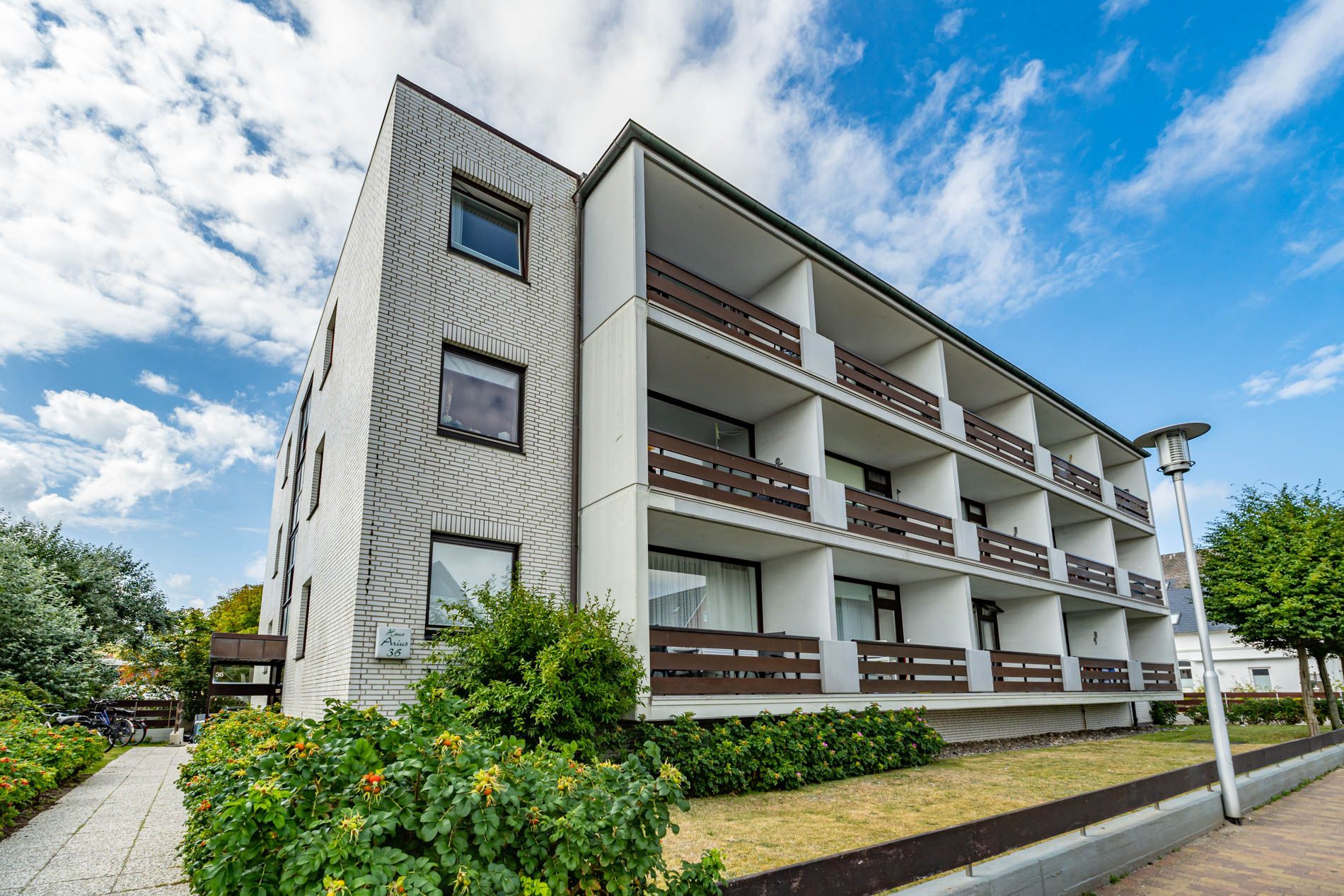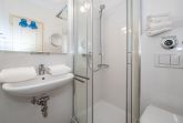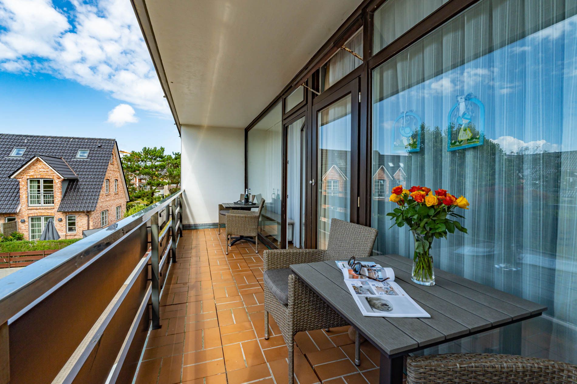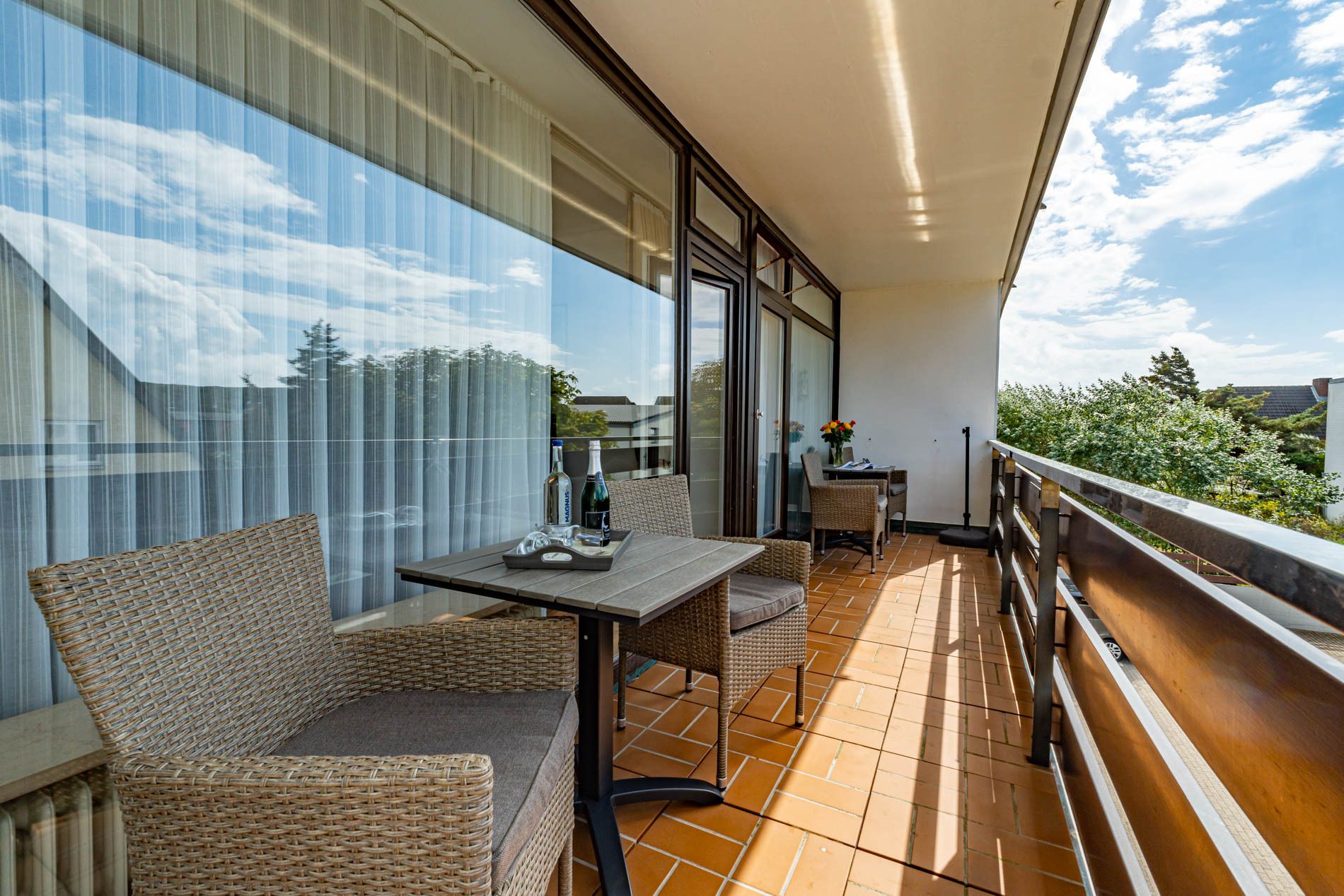 2-Zimmer-Nichtraucher-Ferienwohnung (ca. 50 qm) in der 1. Etage für max. 4 Personen mit Westbalkon (Nachmittagssonne, mit Balkonmöbeln, Auflagen und Sonnenschirm) und eigenem PKW-Außenstellplatz (inklusive).