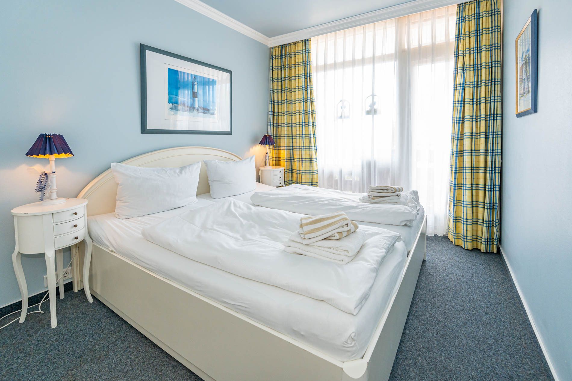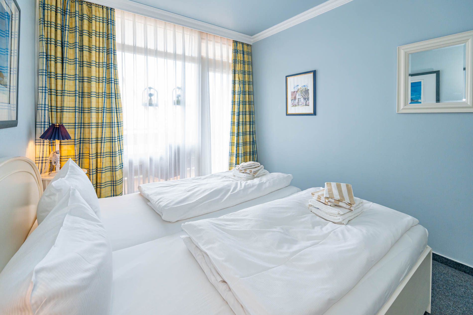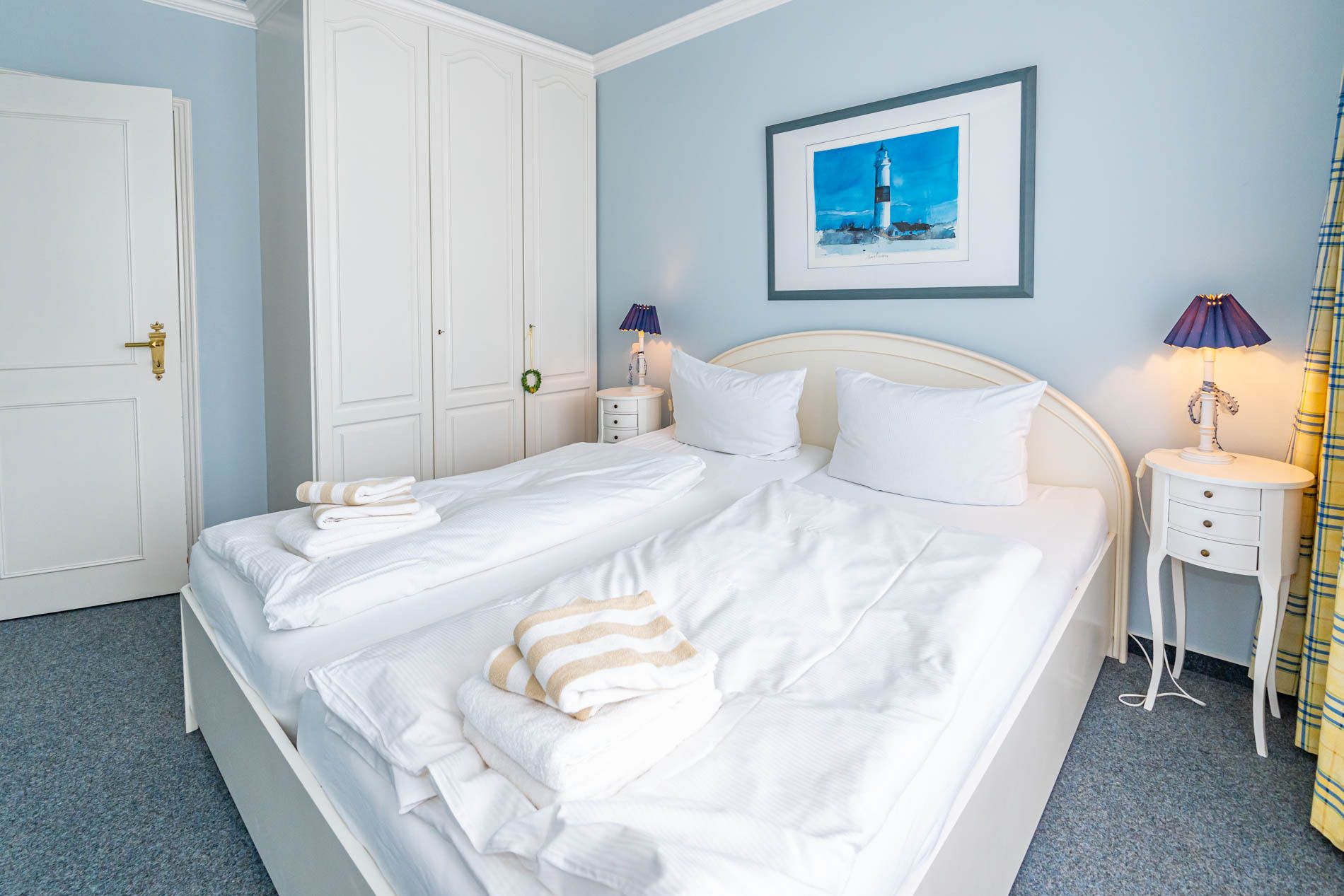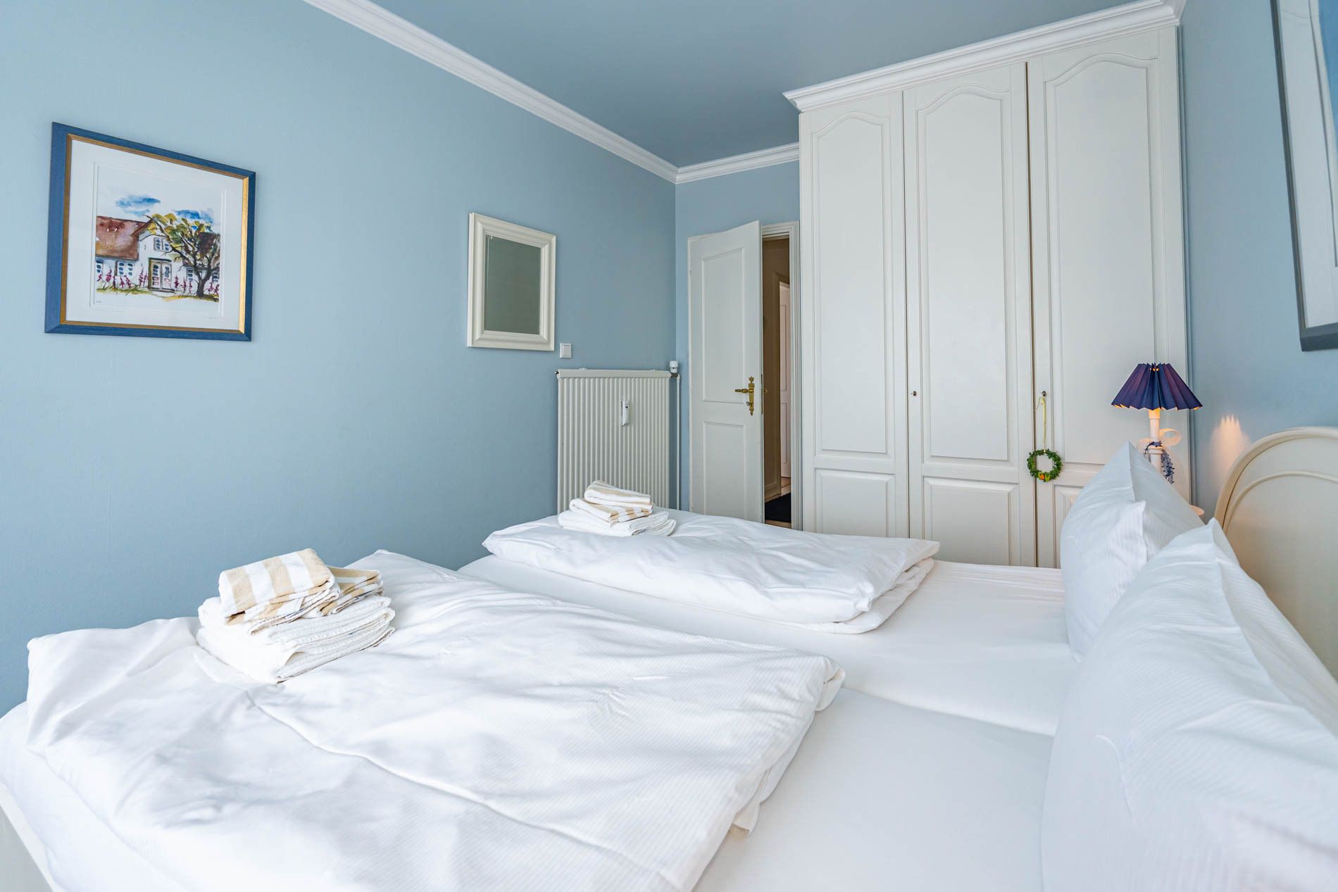 Das Schlafzimmer hat ein bequemes Doppelbett (1,80 x 2,00m) mit zwei Einzelmatratzen.