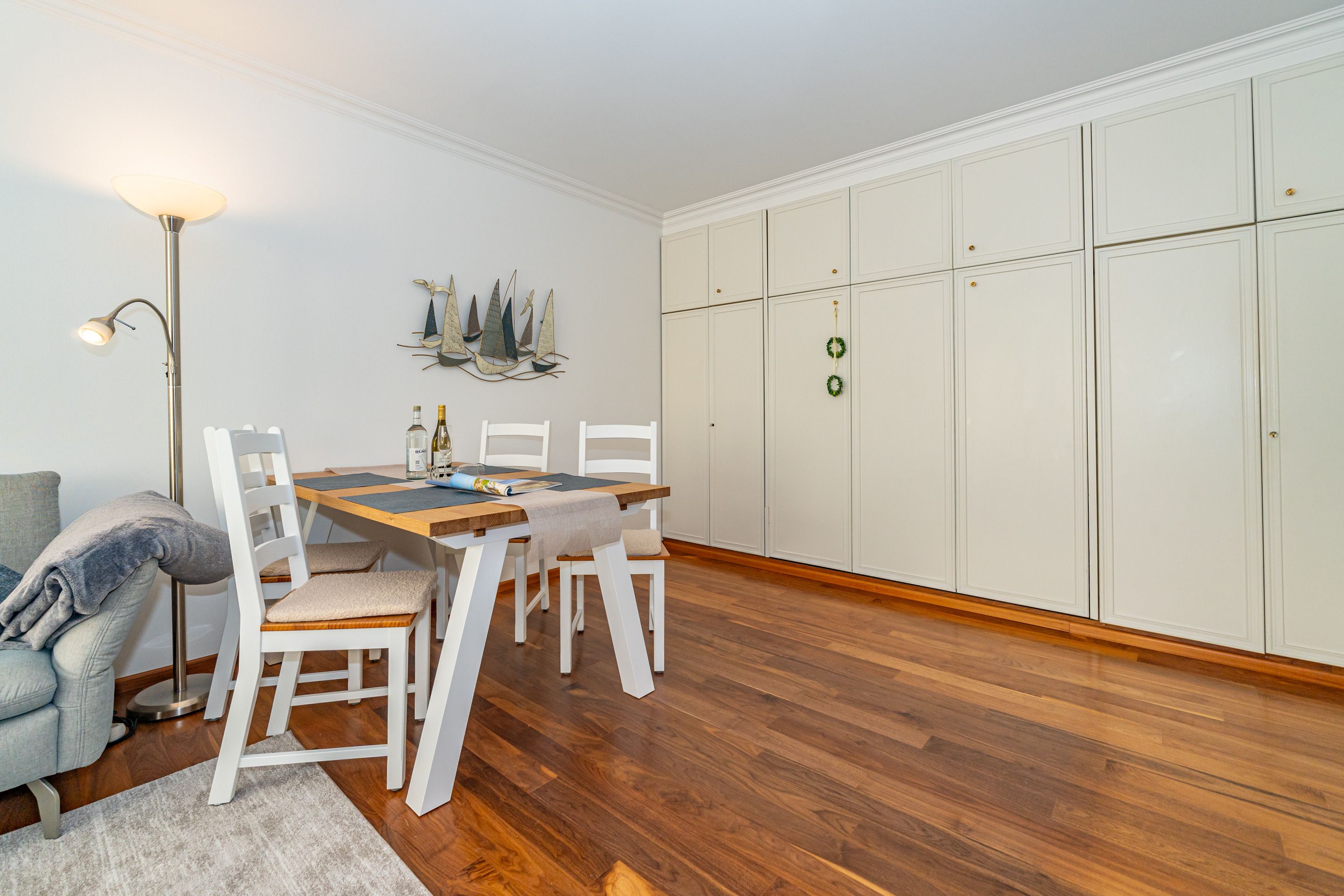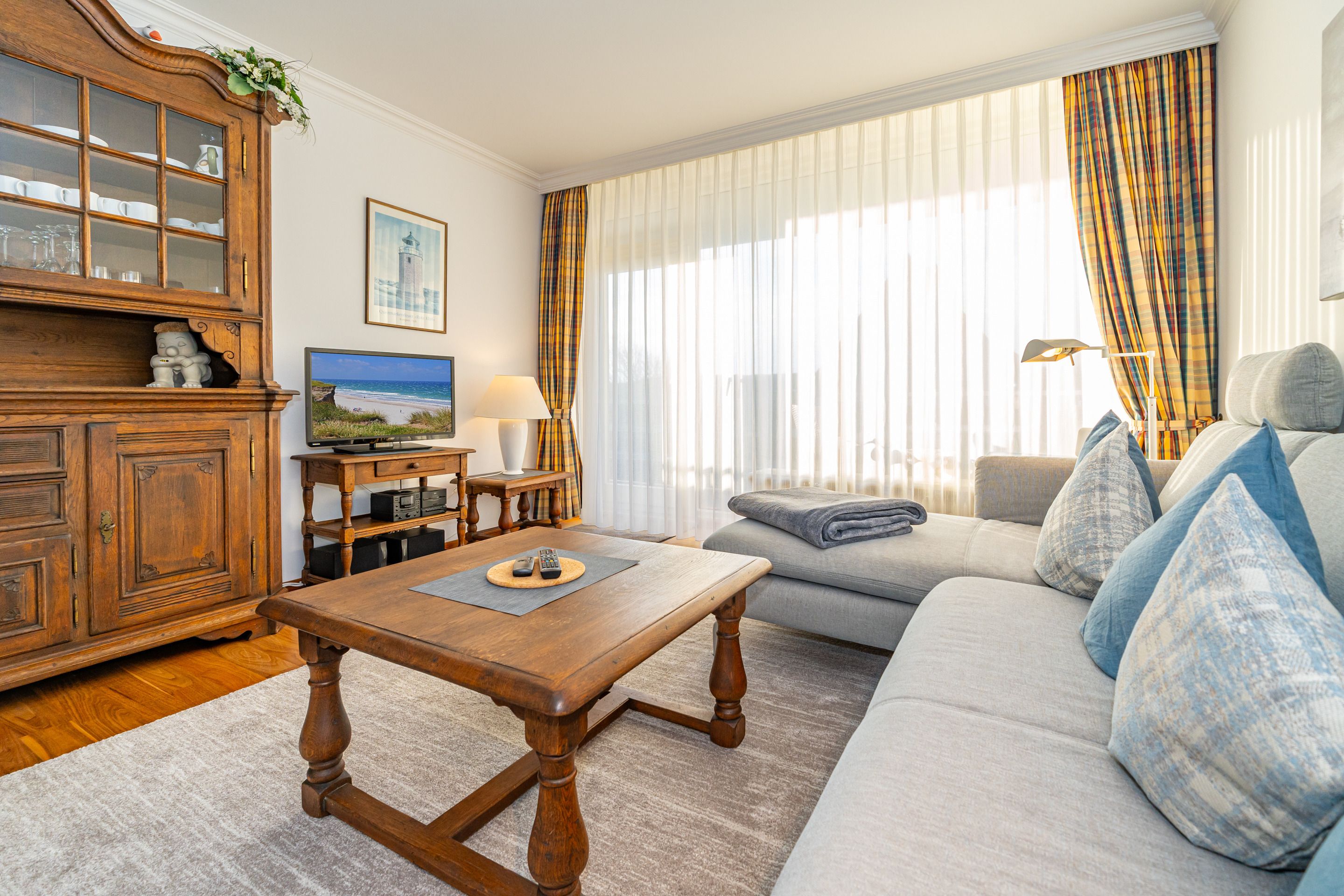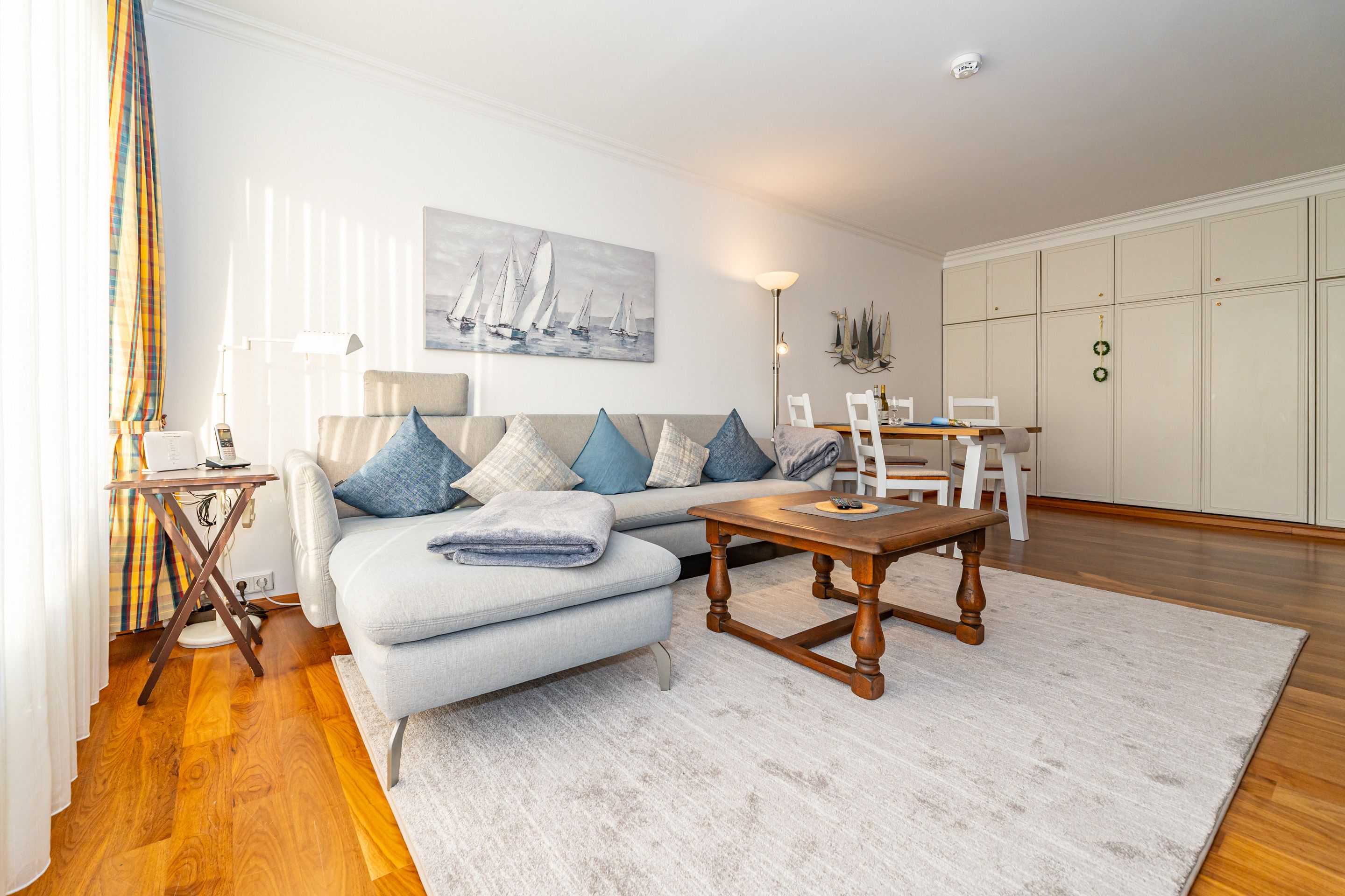 Der Wohnraum besteht aus einer gemütlichen Sitzgarnitur (Sofaecke), einer Essecke, Doppelwandschrankbett (2 Einzelmatratzen), Kabel-Flachbild-TV, HiFi-Anlage, Telefon inklusive Flatrate für Gespräche ins deutsche Festnetz (Handynummern gesperrt) und kostenloser Internetzugang per W-Lan (ohne Gewähr).