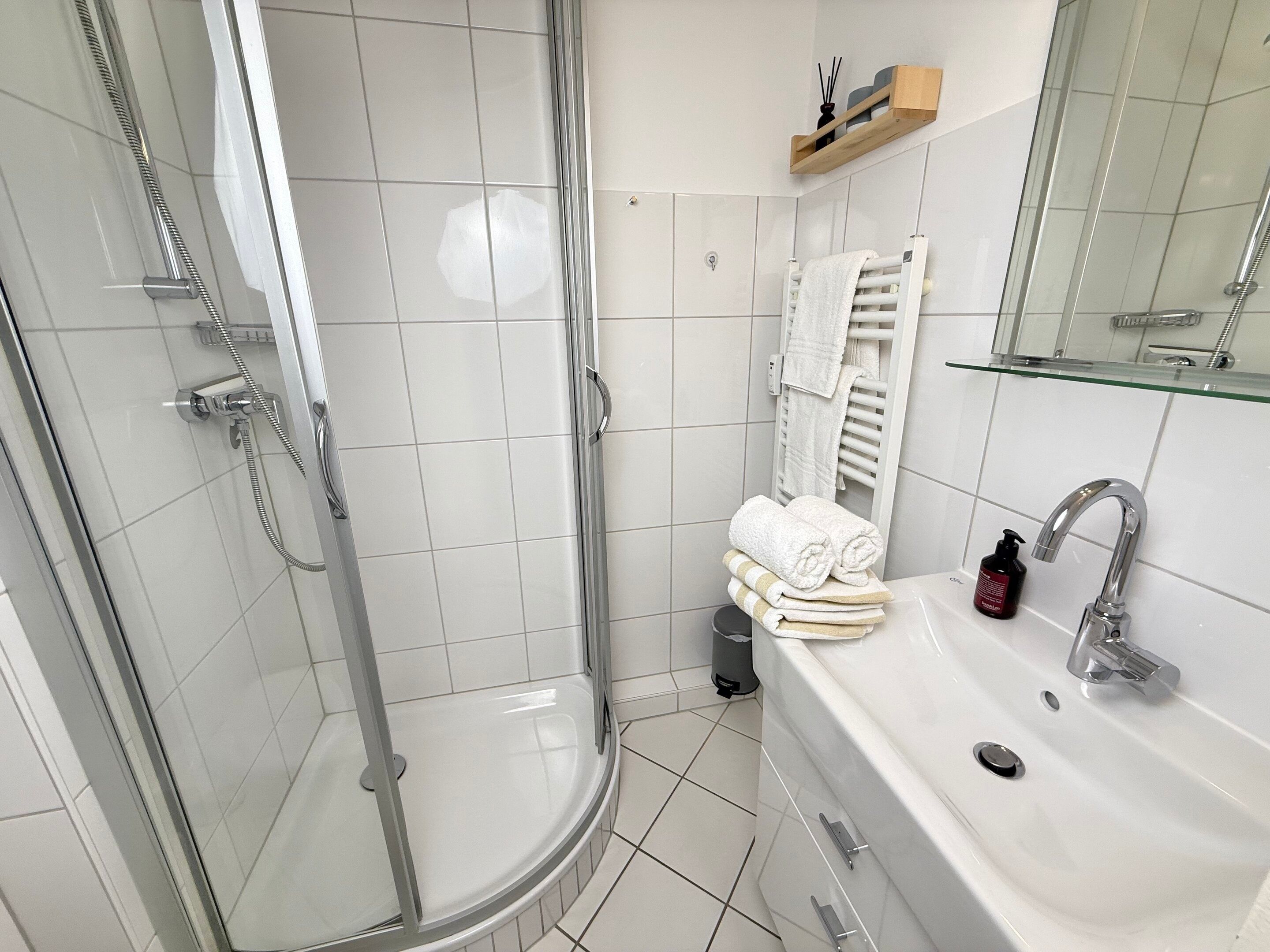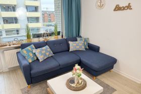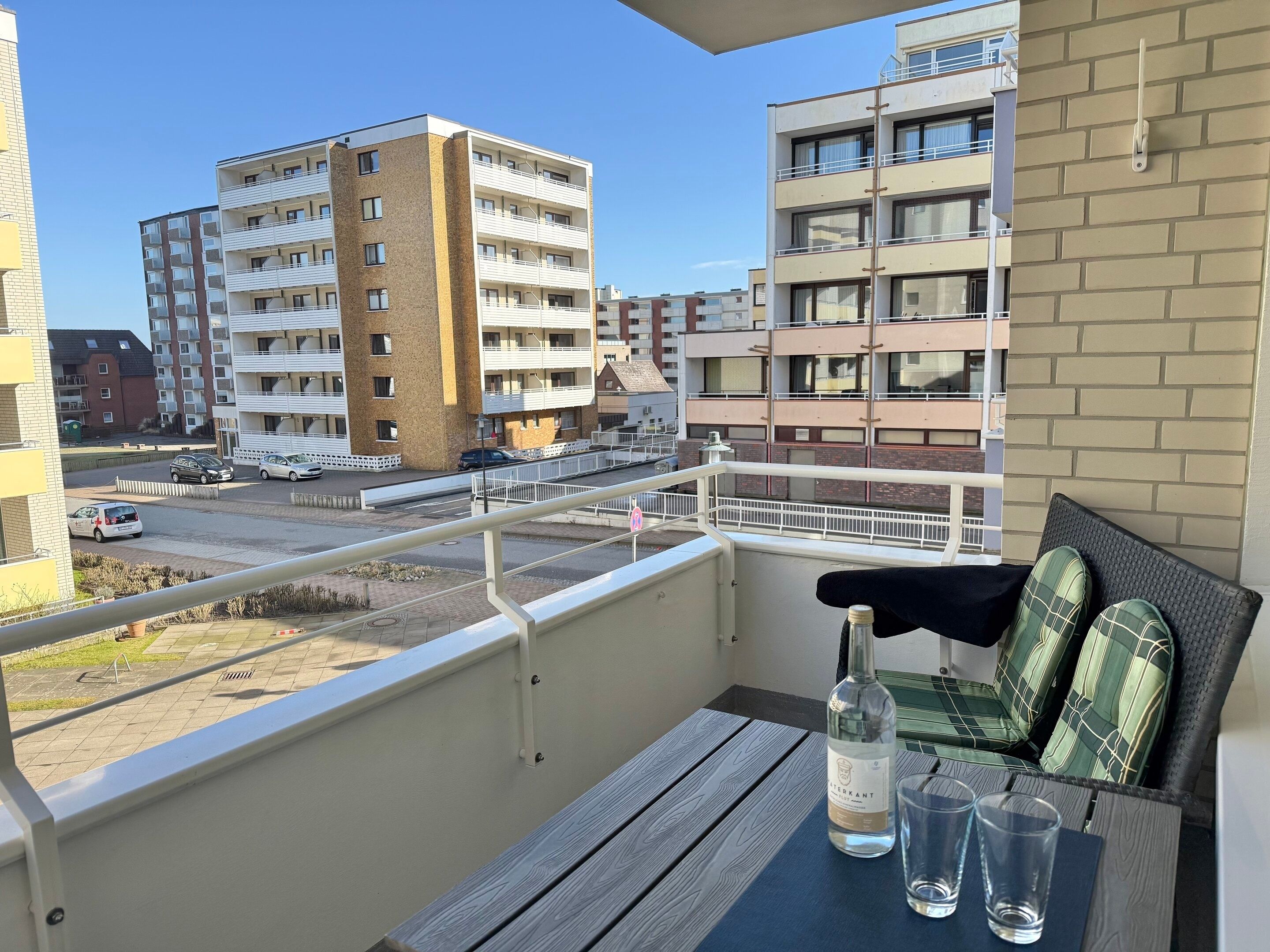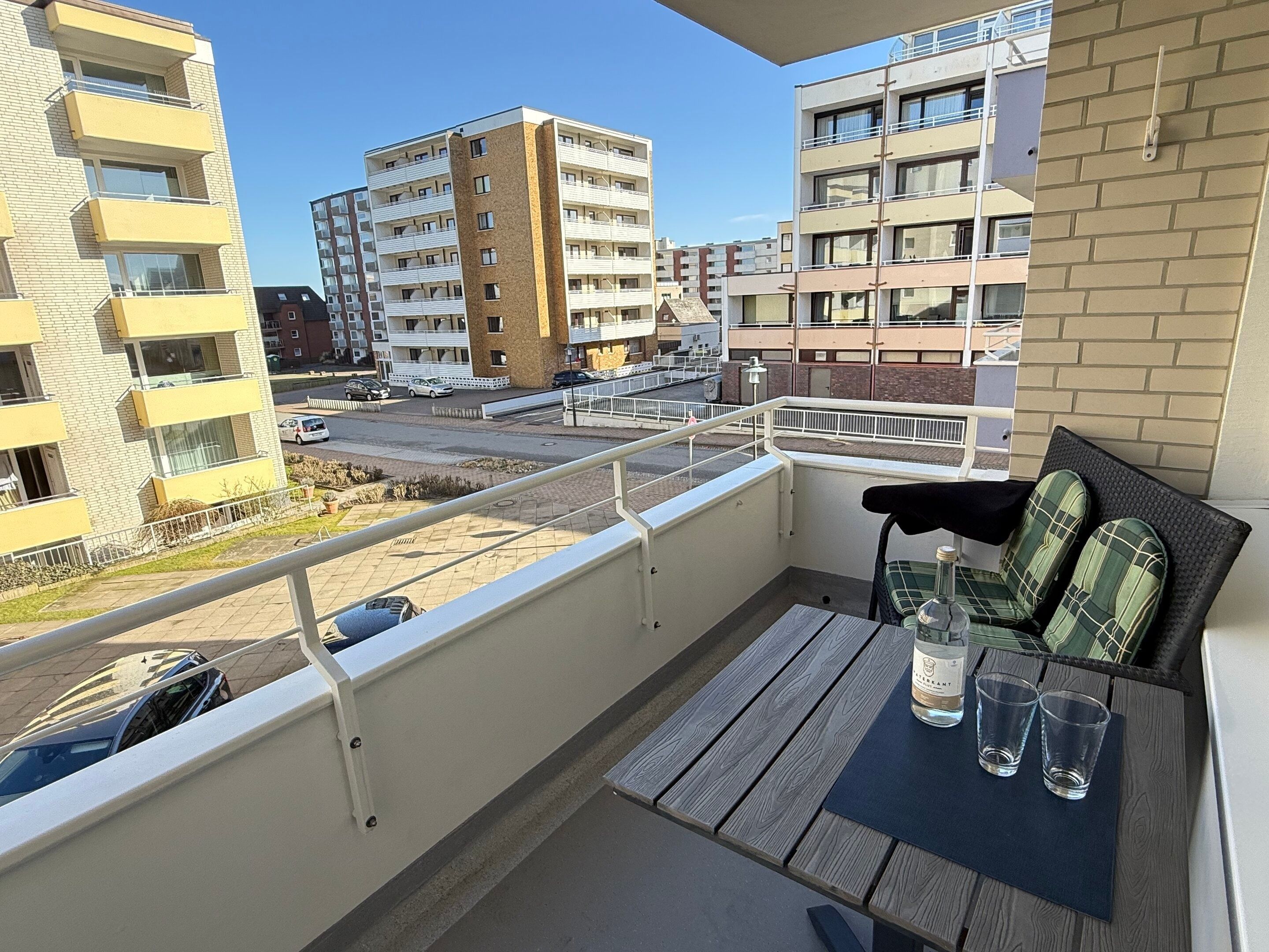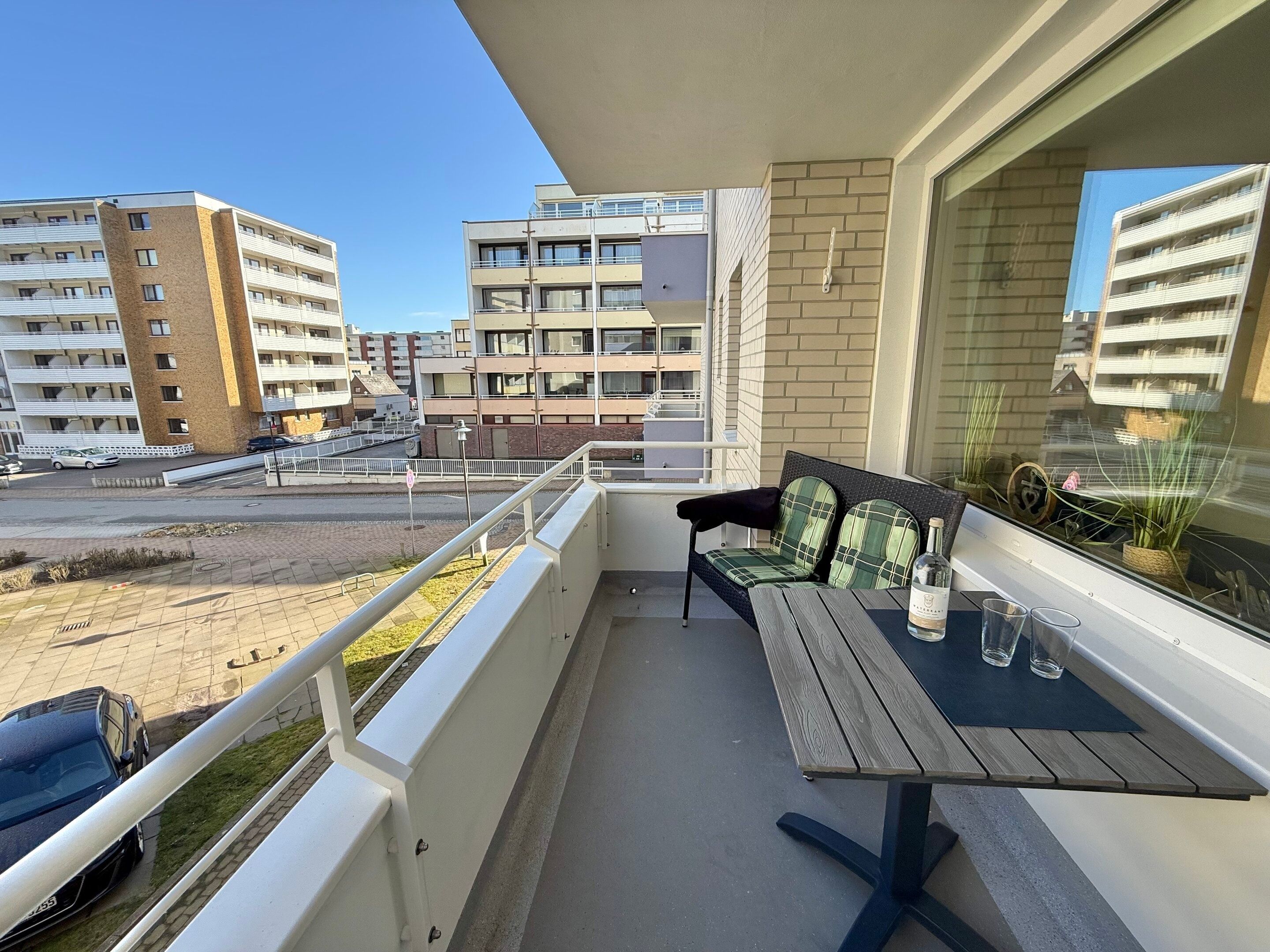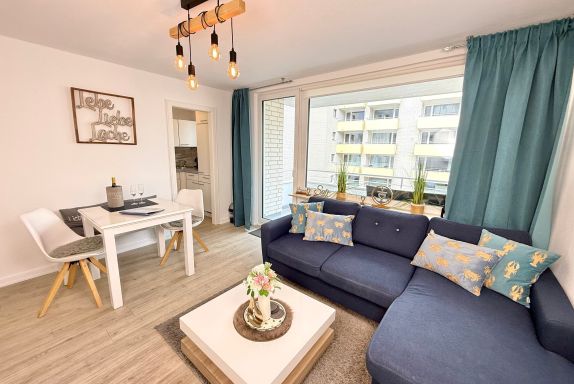 Komfortable 2-Zimmer-Ferienwohnung (ca. 34 m²) für bis zu 3 Personen in der 1. Etage im Haus Atlantik in Westerland – nur wenige Schritte vom Strand und der Fußgängerzone entfernt. Helles Wohnzimmer mit Eckcouch (Schlaffunktion), Esstisch, Sat-TV, DVD und Radio mit iPod-Dock. Offene Küche mit Geschirrspüler, Induktionsherd, Mikrowelle, Nespresso-Maschine, Kaffeemaschine, Wasserkocher und Toaster. Separates Schlafzimmer mit Doppelbett (1,80 x 2,00 m, Einstieg über das Fußende). Modernes Duschbad, WLAN inklusive, Aufzug im Haus, gemütlicher Nordbalkon für die Abendstunden. Haustiere sind nicht erlaubt; Außenstellplatz auf Wunsch gegen Gebühr zubuchbar (begrenztes Kontingent).