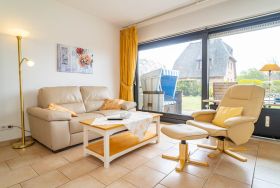 Gemütliche 1,5 Zimmer-Nichtraucher-Ferienwohnung, ca. 40 qm im Parterre zur Südseite mit Südterrasse und Gartenanteil (Strandkorb, Terrassenmöbel mit Auflagen) für max. 2 Personen.