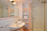 Im Bad befinden sich eine Dusche, ein WC und ein Waschtisch.