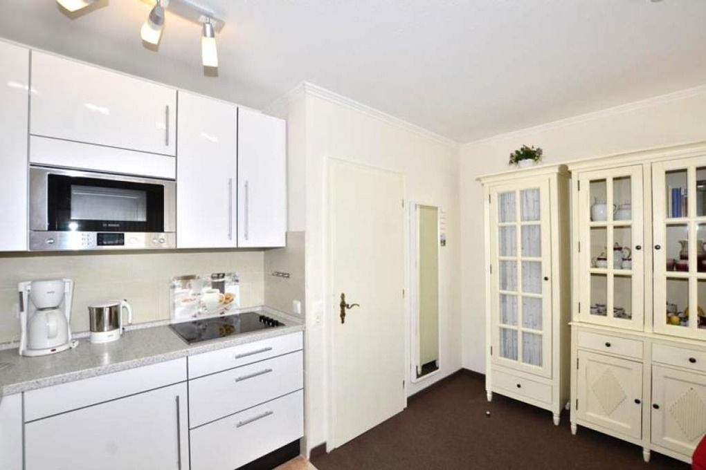 Die Küchenzeile hat einen Geschirrspüler, eine Mikrowelle, ein Ceranfeld mit 4 Kochfeldern, einen Kühlschrank. Kaffeemaschine, Wasserkocher und Toaster gehören zur Grundausstattung.