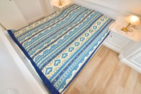 Das Schlafzimmer hat ein gutes Doppelbett (normales Maß: 1,60 x 2,00  m) mit Einzelmatratzen und einem Kleiderschrank.