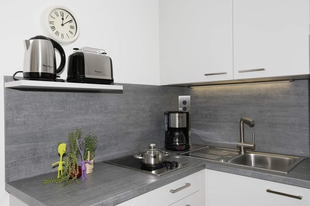 Kaffeemaschine, Wasserkocher und Toaster gehören zur Grundausstattung.