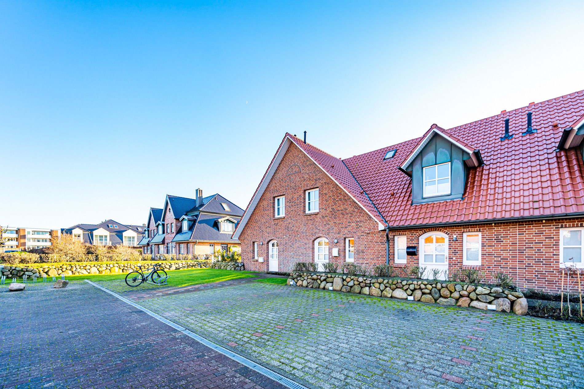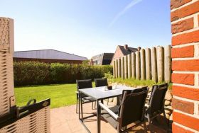 Exklusiv und großzügig präsentiert sich das Nichtraucher-Ferienhausteil mit ca. 98 qm für 6 Personen mit Südterrasse (mit Saisonstrandkorb und Gartenmöbeln).