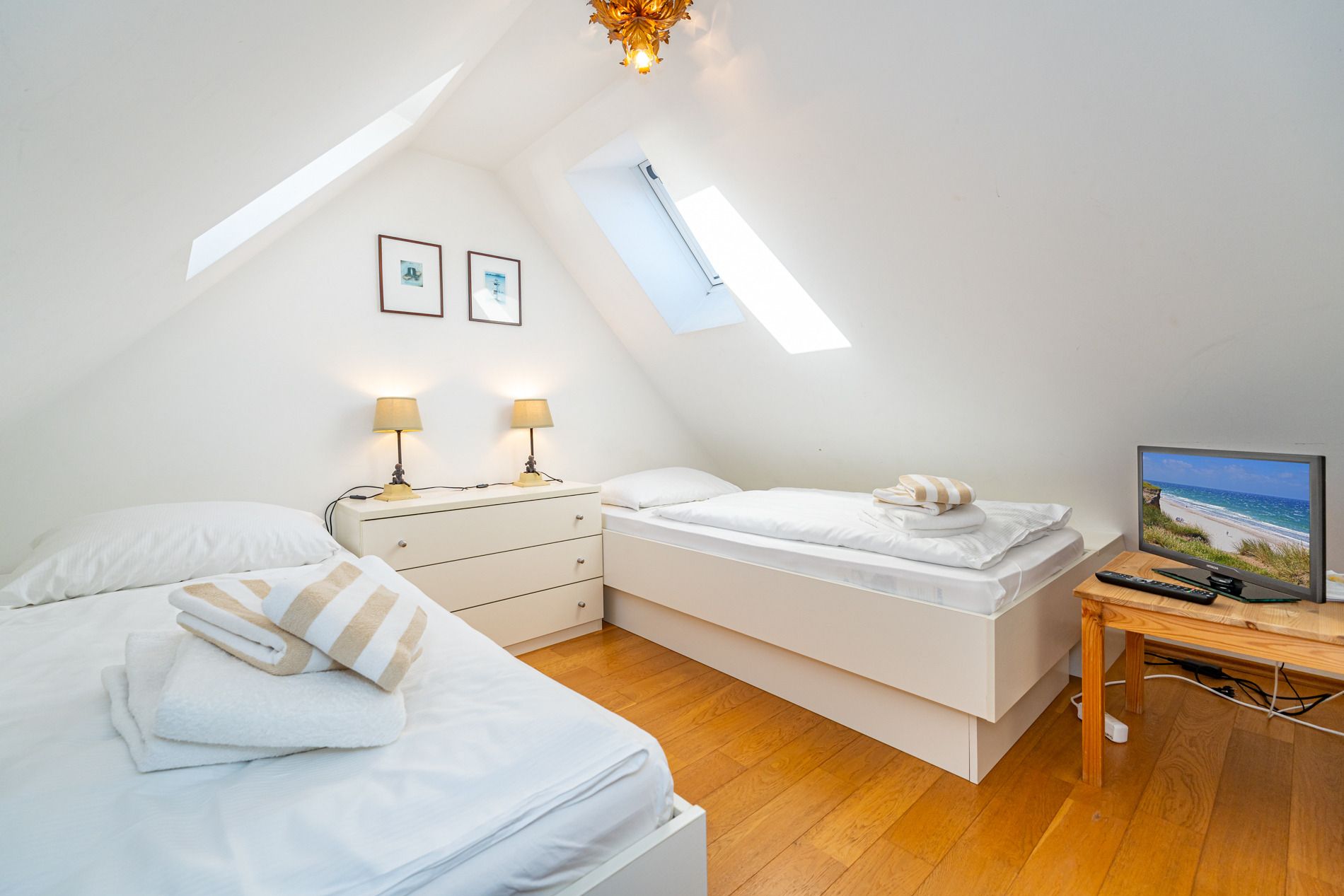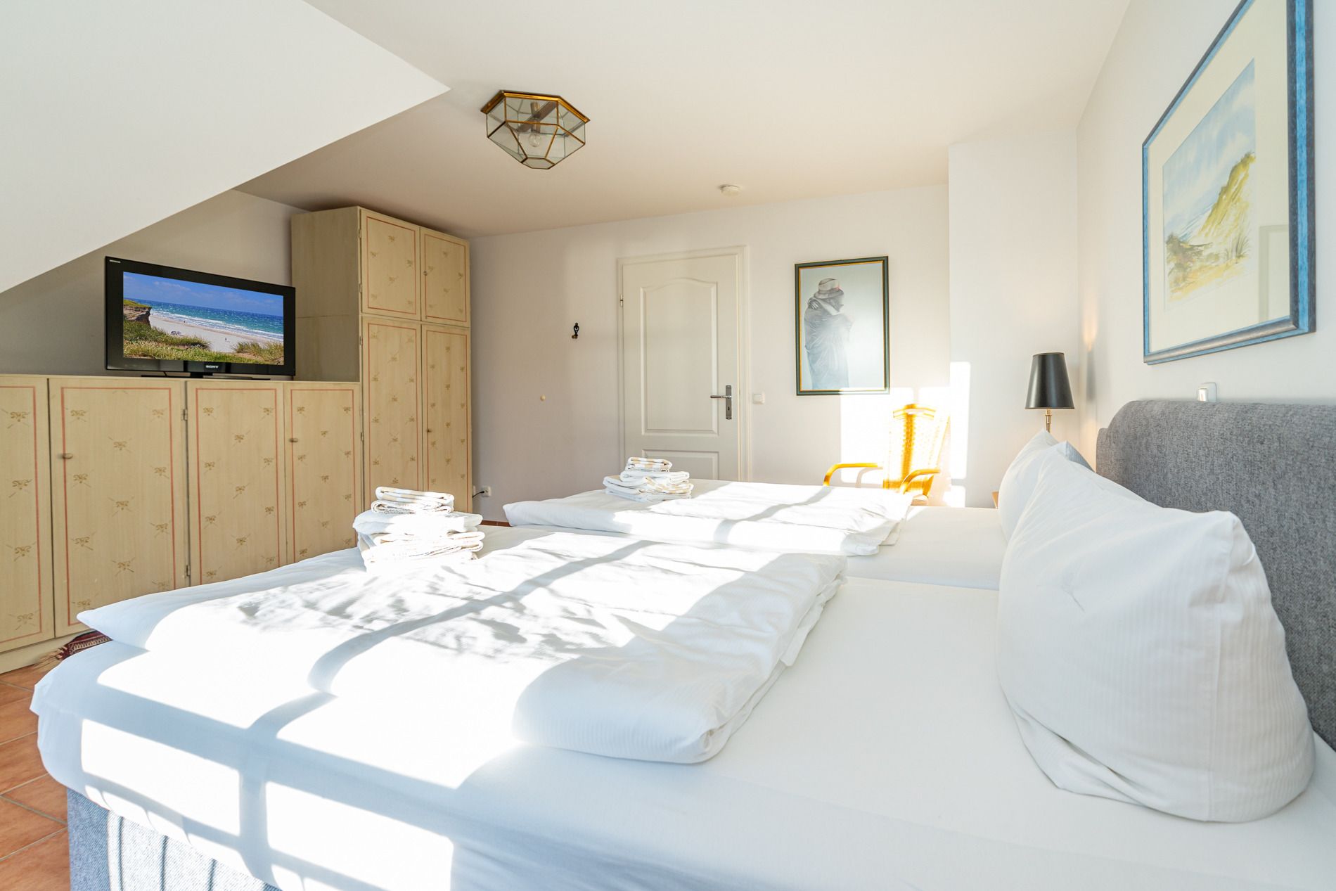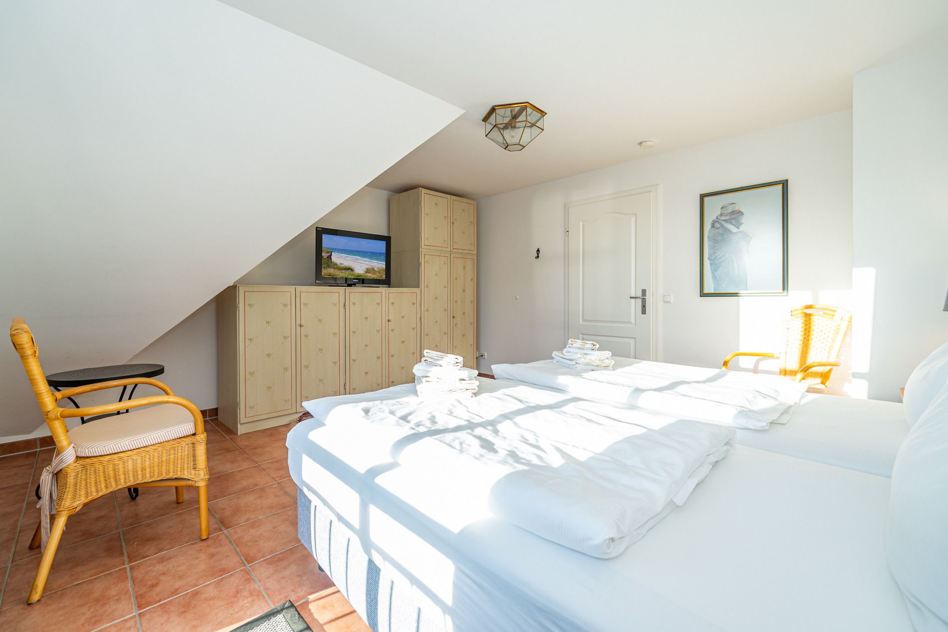 Zusätzlich gibt es noch ein weiteres, kleines Schlafzimmer mit zwei Einzelbetten (0,90 x 2,00 m) sowie TV.