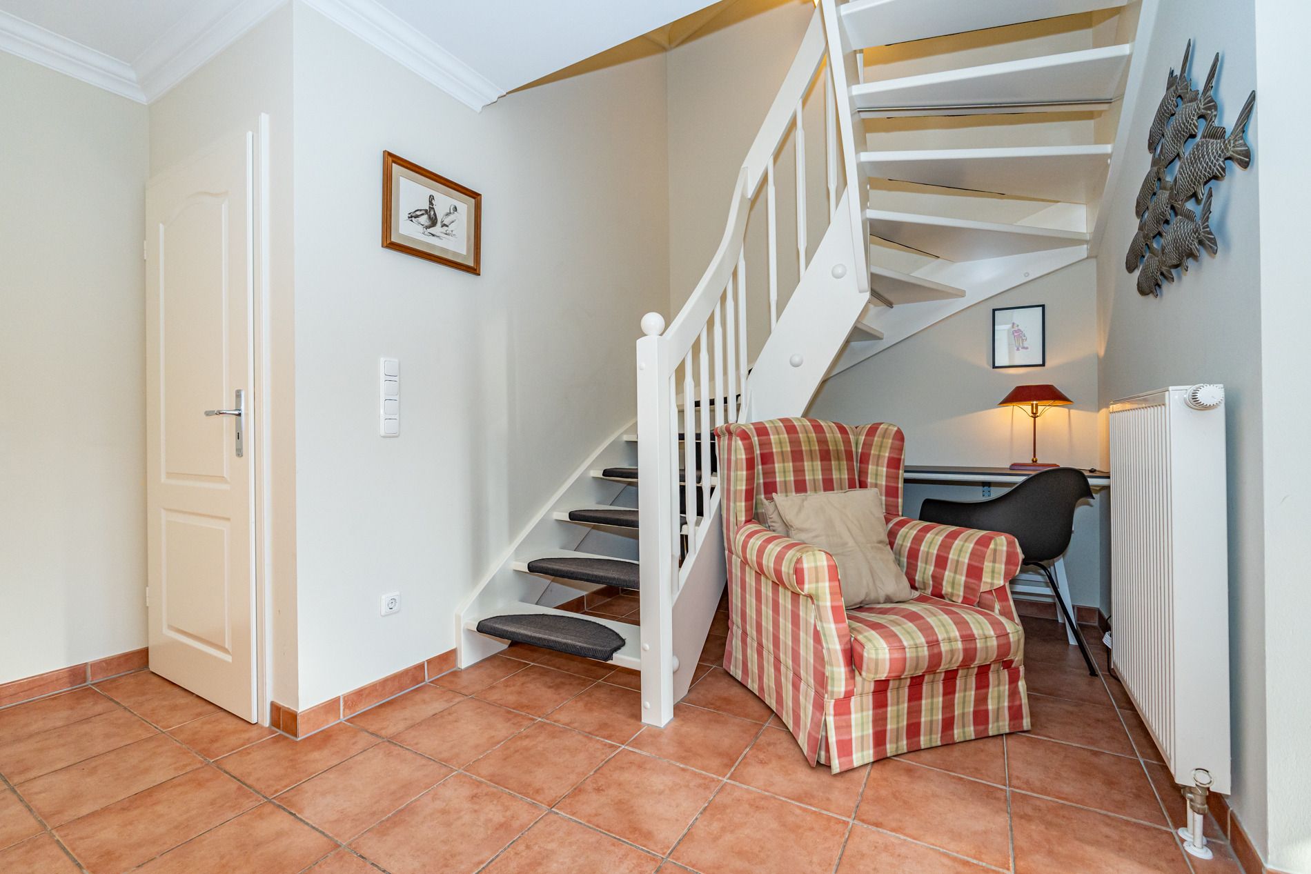 Waschmaschine und Trockner sind im eigenen Hauswirtschaftsraum untergebracht (Nutzung inklusive). Auch ein Kinderstuhl steht hier bereit.