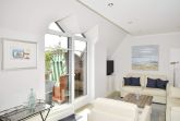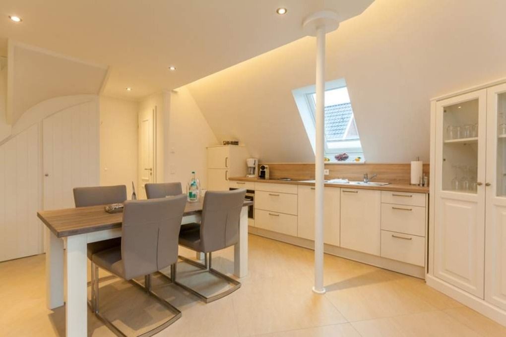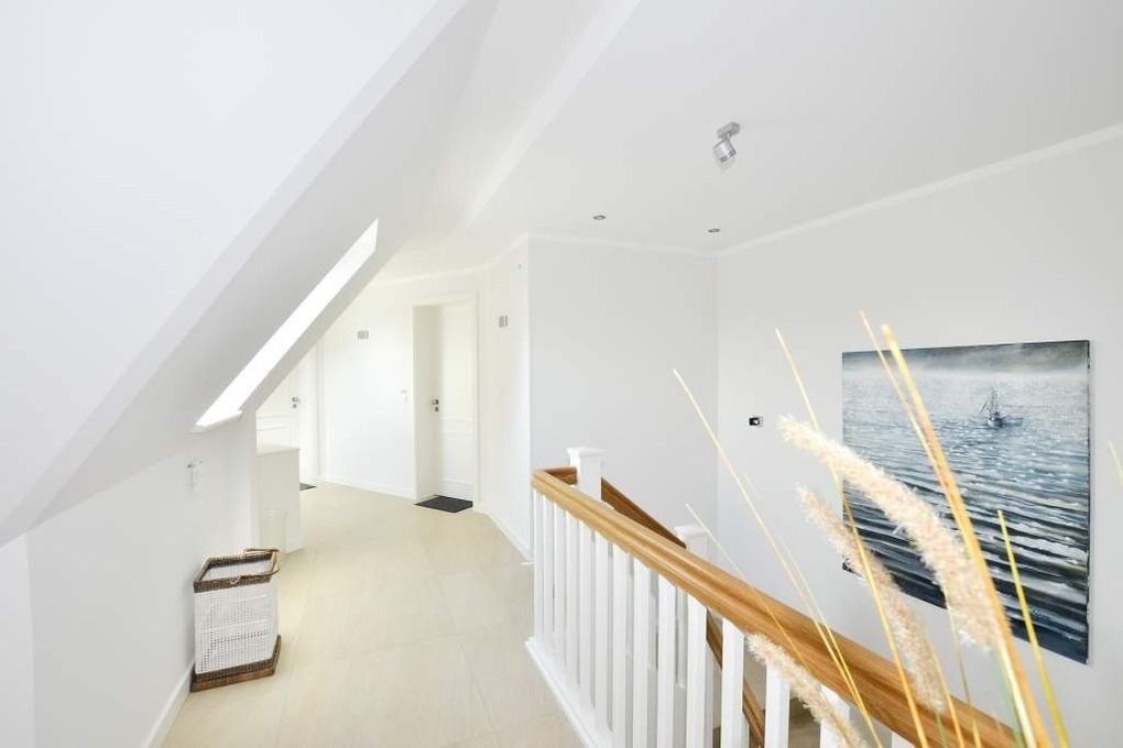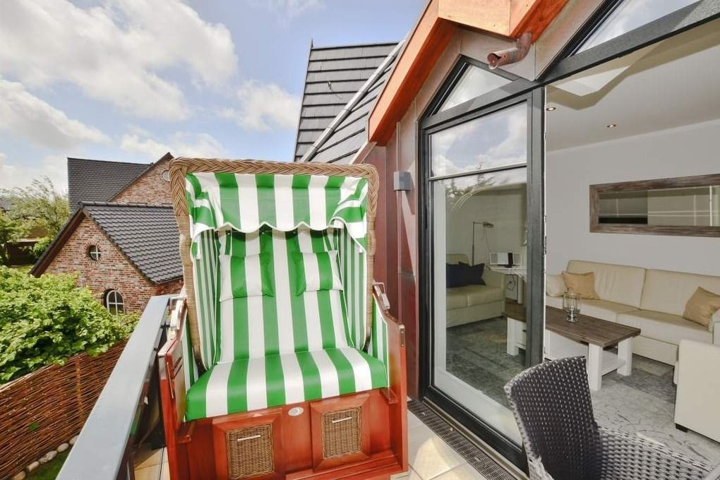 Luxuriöse 2-Zimmer-Maisonette-Nichtraucher-Ferienwohnung mit offener Empore, ca. 75 qm im 1. Obergeschoss, eine Südostloggia mit Strandkorb für 3 Personen