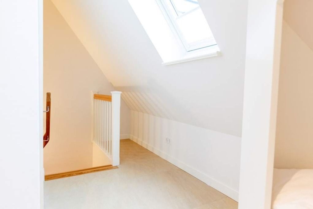 Im Dachgeschoss befindet sich ein geräumiges Doppel-Schlafzimmer mit Boxspringbett in optimaler Liegehöhe (Kinderzustellbett möglich), freistehender Designbadewanne und einem weiteren Flachbild-TV sowie eine offene Empore mit Einzel-Alkoven-Bett (Boxspringbett).