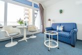 1-Zimmer-Ferienwohnung ca. 30 qm in der 8. Etage (Fahrstuhl bis zur 7. Etage) mit Westbalkon (Nachmittagssonne, mit Balkonmöbeln und Auflagen) für max. 2 Personen.