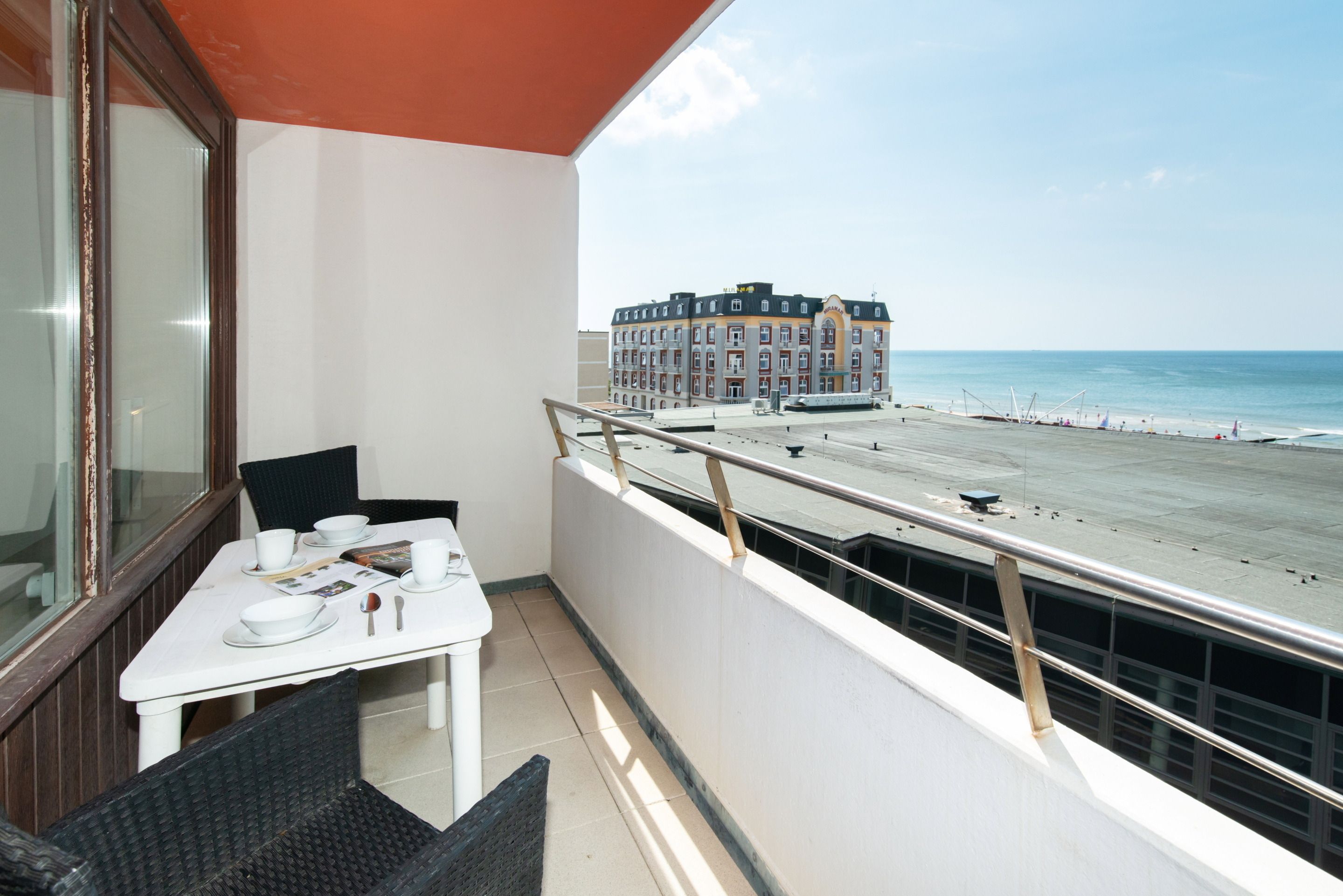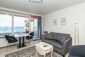Angeboten wird Ihnen ein 1-Zimmer-Nichtraucher-Appartement (ca. 34 qm) in der 2. Etage mit traumhaftem Meerblick und Westloggia (Nachmittagssonne/Sonnenuntergang, inkl. Balkonmöbeln und Auflagen) für 2 Personen.