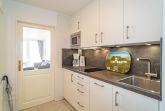 Vom Vorflur mit Garderobe und Küchenzeile gelangt man in das kombinierte Wohn-/Schlafzimmer (mit Zutritt zur Loggia und direktem Meerblick) und in das neue Duschbad/WC.