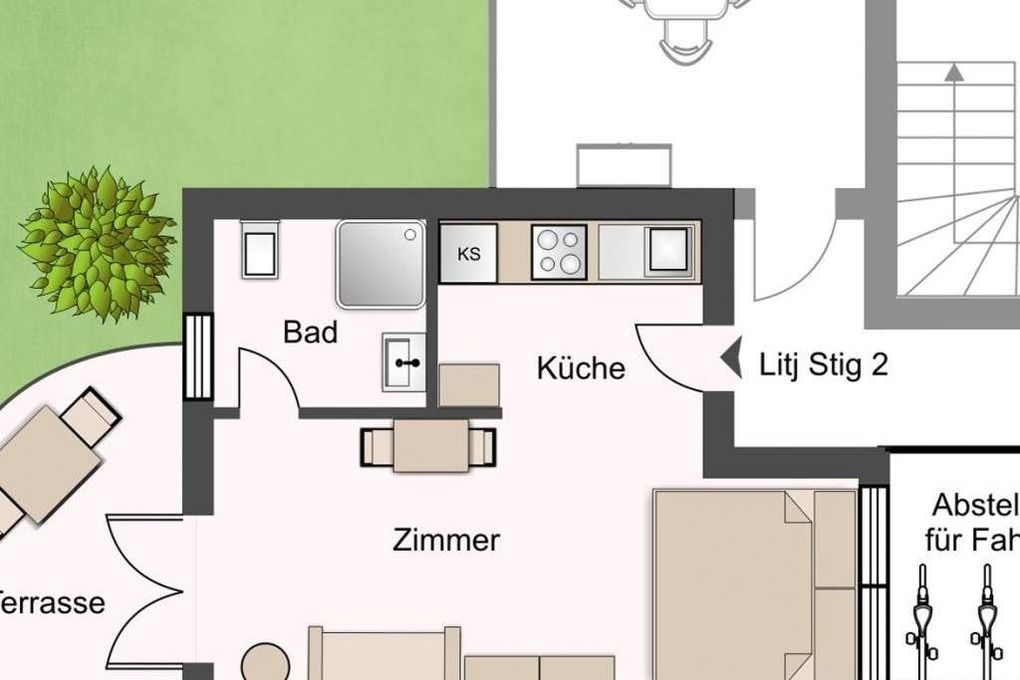 Des Weiteren gehören ein PKW-Stellplatz für EIN PKW und ein gemeinschaftlicher Fahrradabstellplatz zu dieser Ferienwohnung.