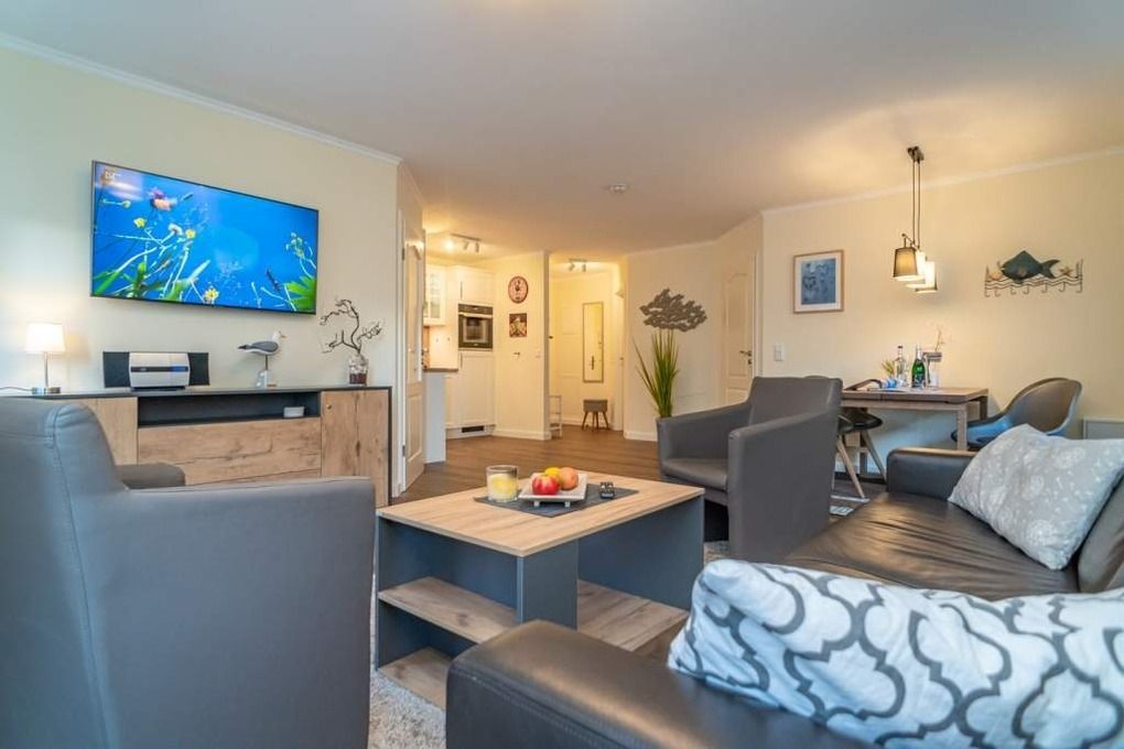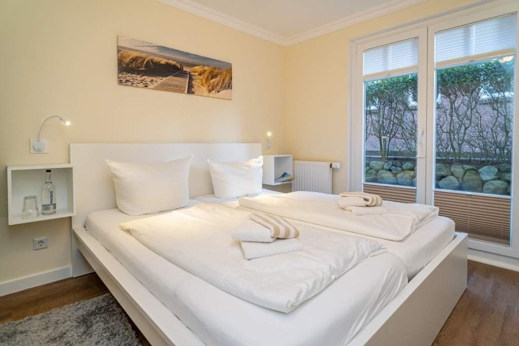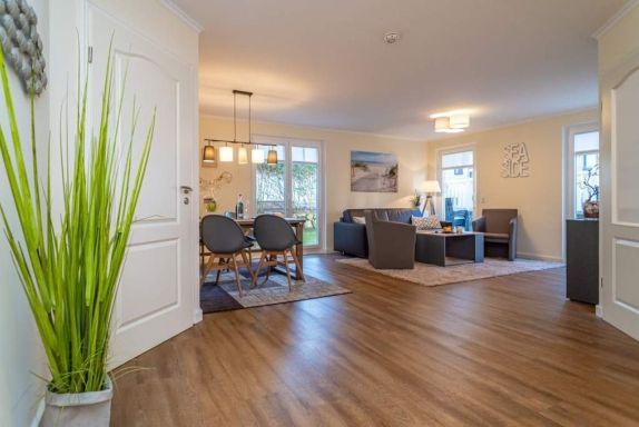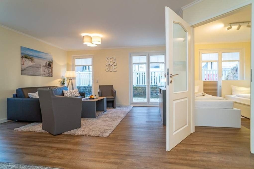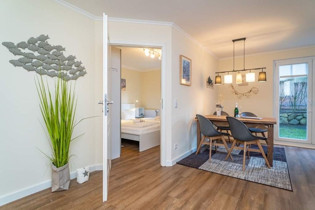 Hochwertig und komplett renovierte 3-Zimmer-Nichtraucher-Ferienwohnung auf einer Ebene mit gehobenem Komfort, ca. 60 qm, im Parterre zur Süd-Westseite mit Terrasse (mit Terrassenmöbeln und Auflagen) für max. 4 Personen.