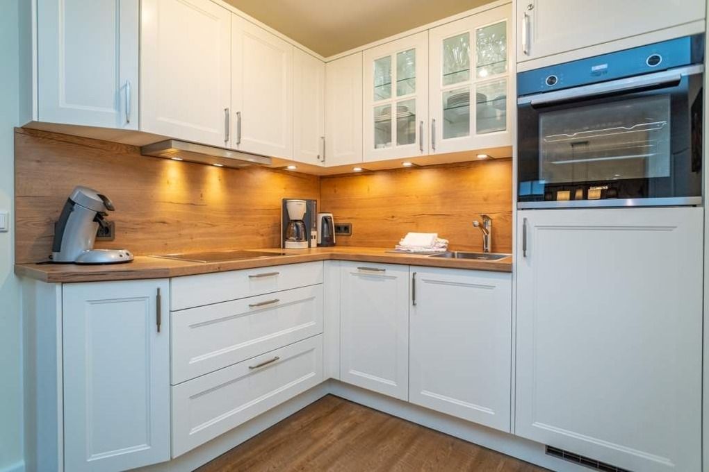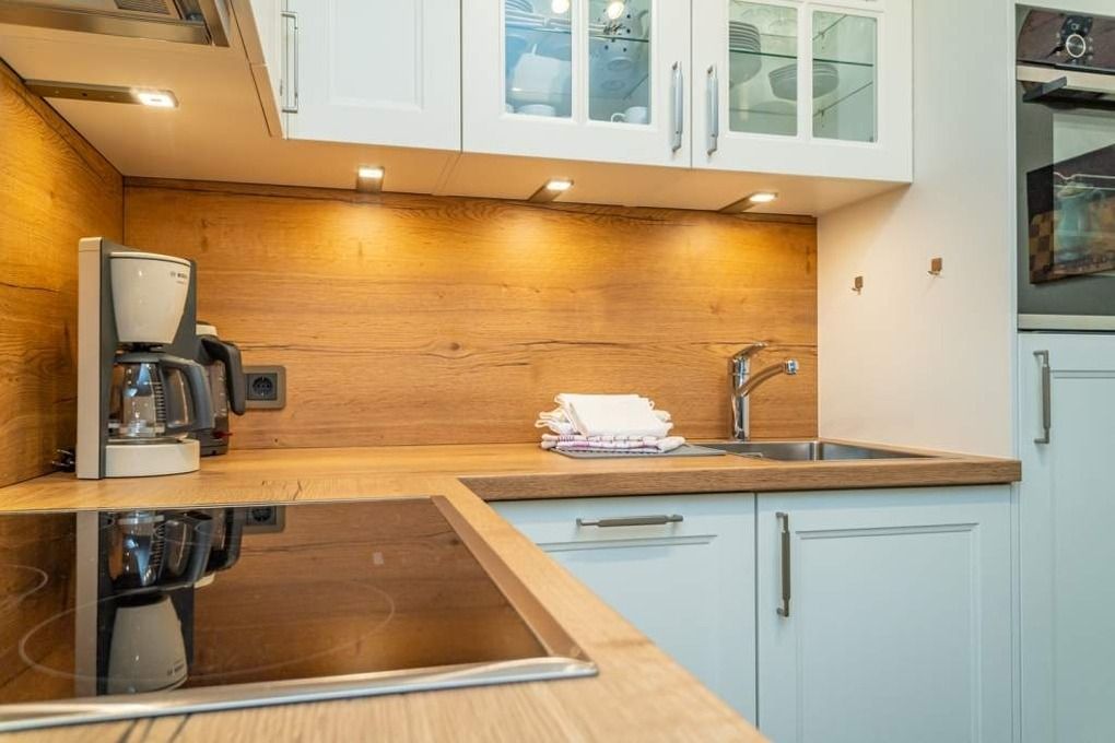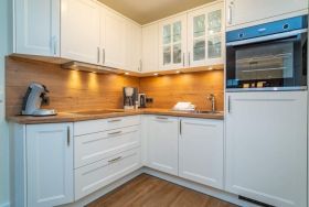 Die neue, moderne Einbauküche bietet allen Komfort. Geschirrspüler, Backofen, 4-Platten-Ceranfeld, Kühlschrank mit 3*-Gefrierfach ausgestattet, XXL-Auszüge und Senseo-Kaffeemaschine stehen zu Ihrer Verfügung. Kaffeemaschine, Wasserkocher und Toaster gehören zur Grundausstattung.