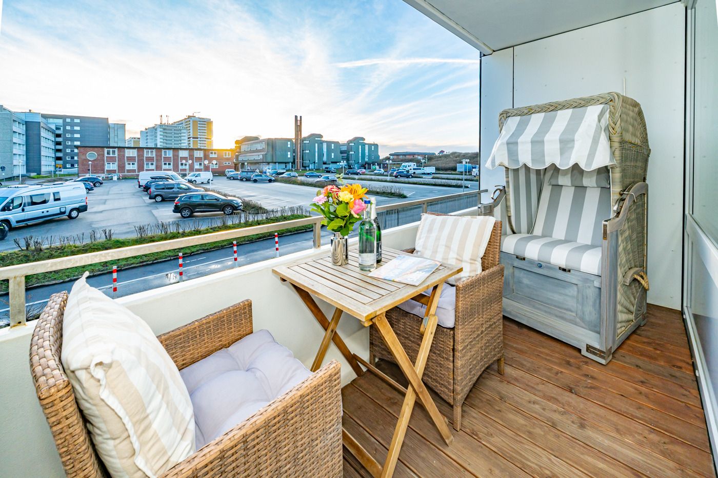 Die helle 1-Zimmer-Ferienwohnung, ca. 40 qm, befindet sich in der 1. Etage Hauses und ist mit Südloggia (Sonnenseite, mit Balkonmöbeln und Auflagen) nach Süden ausgerichtet.